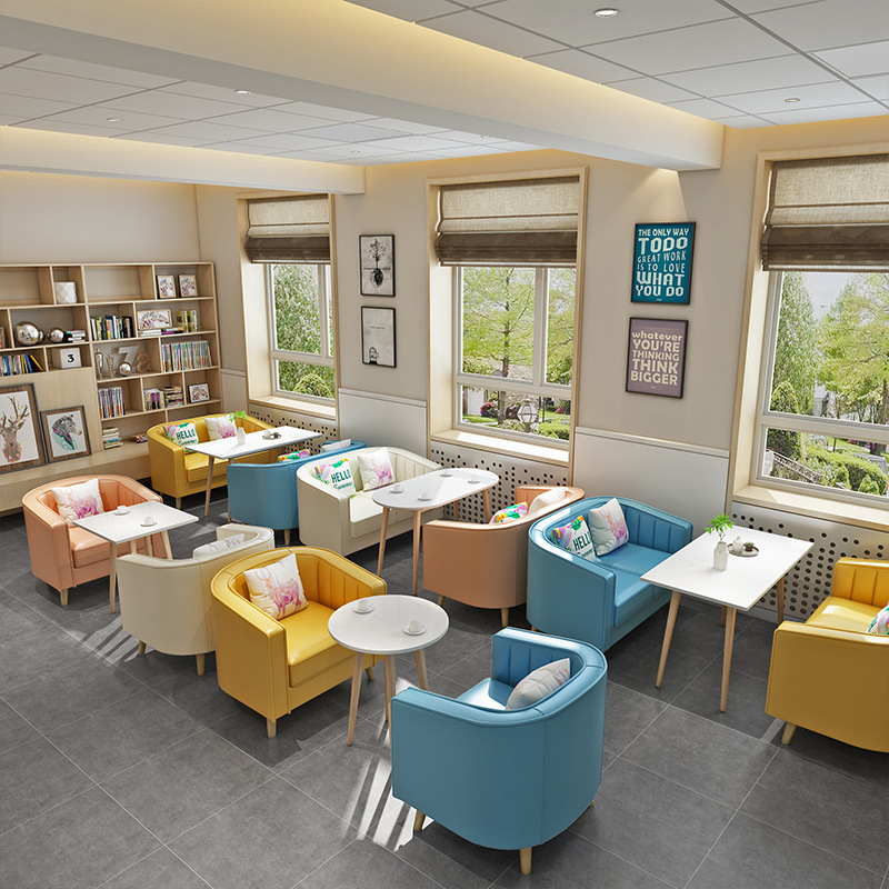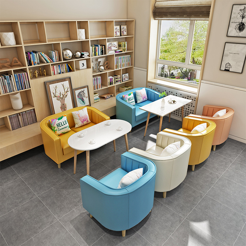 Современное минималистичное кафе в стиле ретро-чайный домик с мягким пакетом для дивана для отдыха Чайный ресторан с молоком Чайный магазин Комбинация столов и стульев