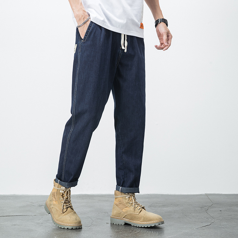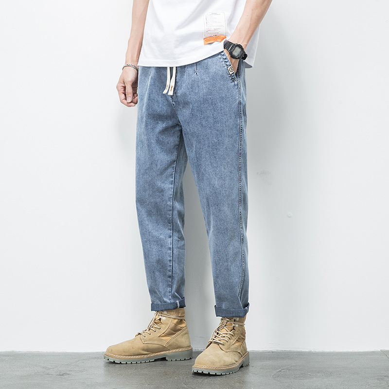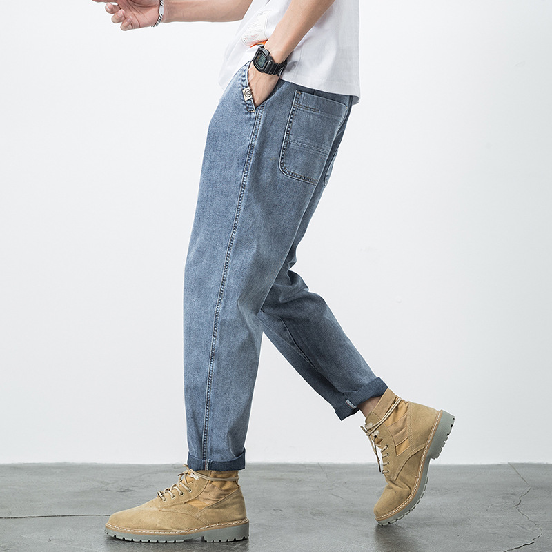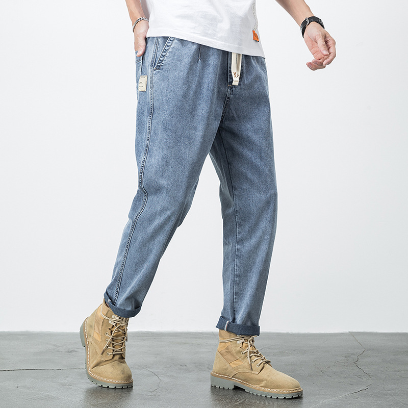 6321 | Мужские джинсы больших размеров мужские 2023 весенне-летние новые мерсеризованные хлопковые шаровары простые укороченные джинсы