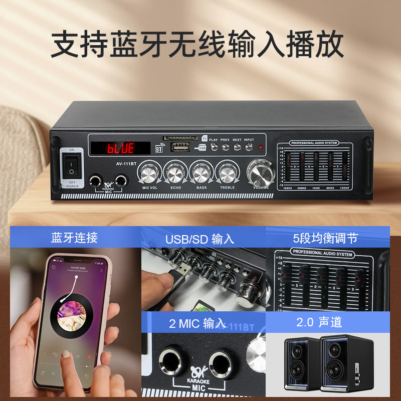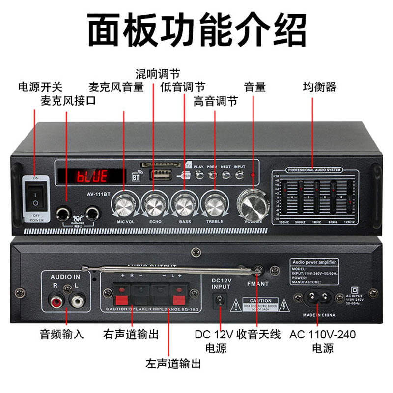 AV-111BT Усилитель мощности Bluetooth лихорадка аудио передний и задний усилитель мощный двухканальный сценический Профессиональный усилитель мощности
