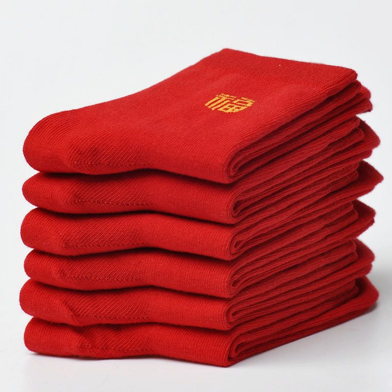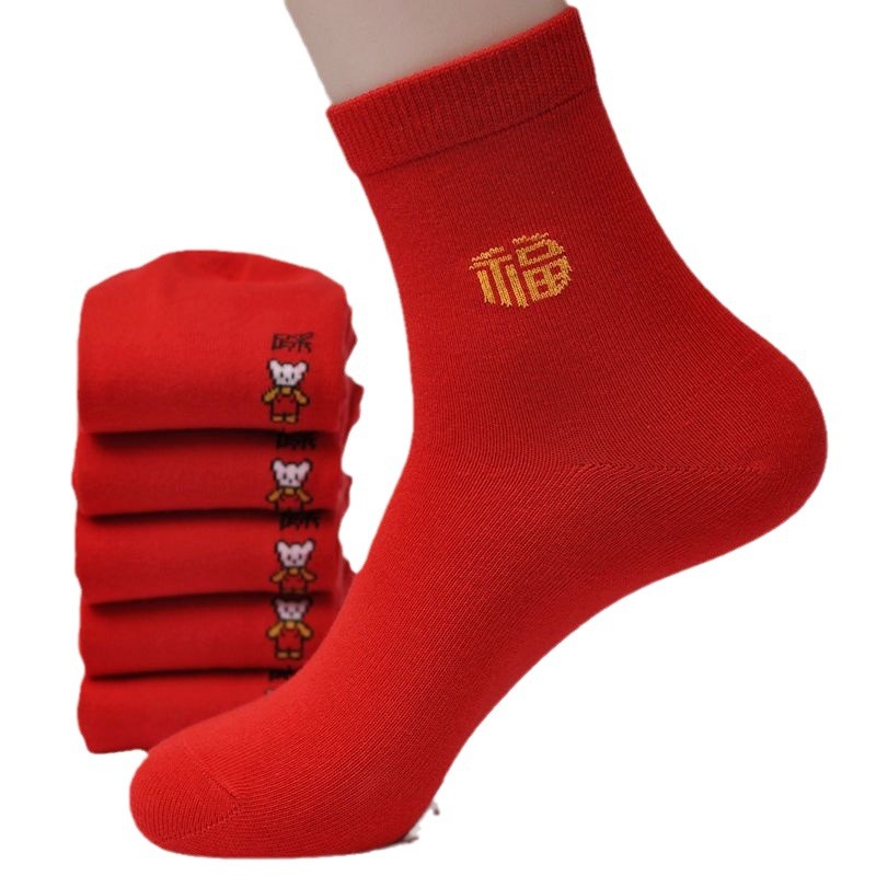 Красные носки натальный год носки средняя трубка хлопчатобумажные носки благословения большие красные носки для мужчин и женщин пара красные носки для года дракона оптом