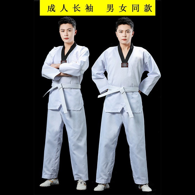 Одежда для тхэквондо Детский Взрослый хлопок Одежда для Каратэ с длинным коротким рукавом Пояс для тхэквондо Цена