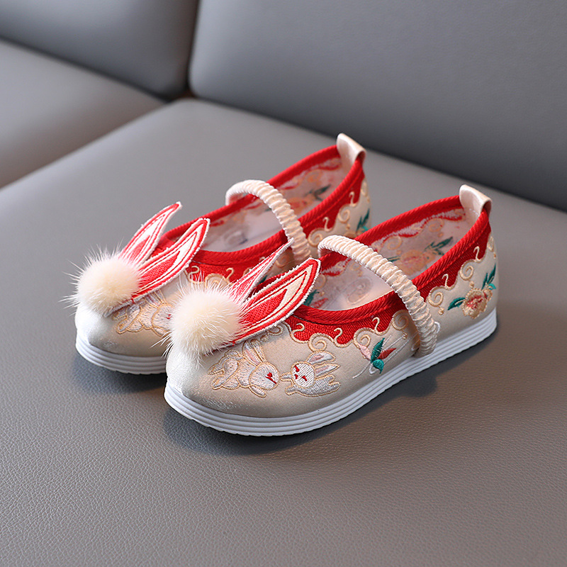 2025 для девочек Hanfu обувь новая вышитая обувь в китайском стиле кролик уха детская игра обувь на мягкой подошве старинная обувь весна