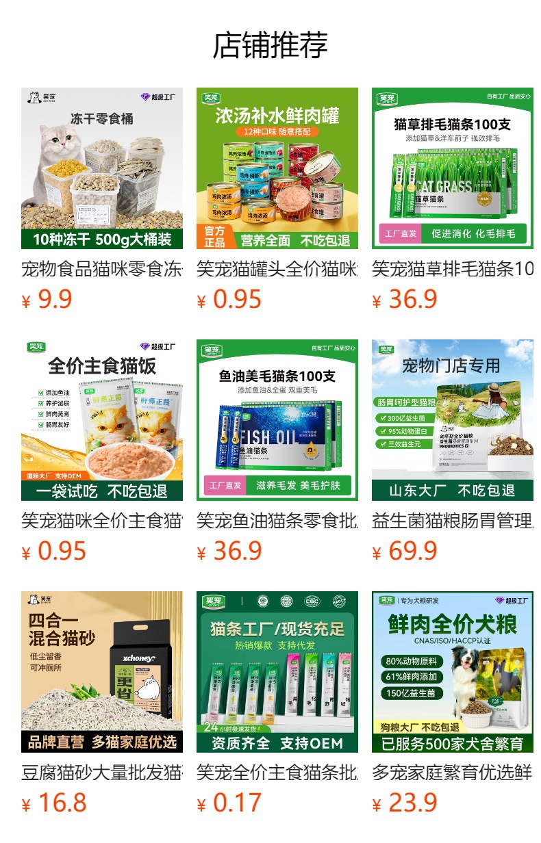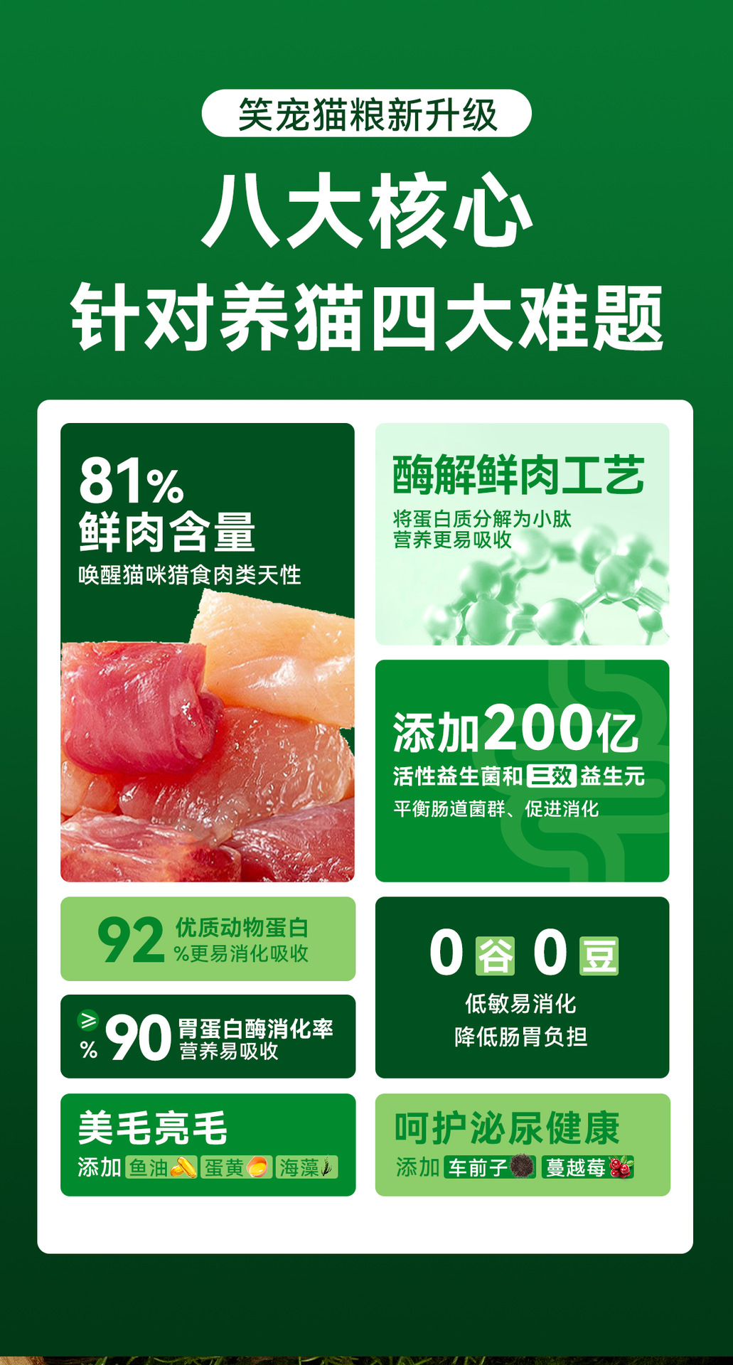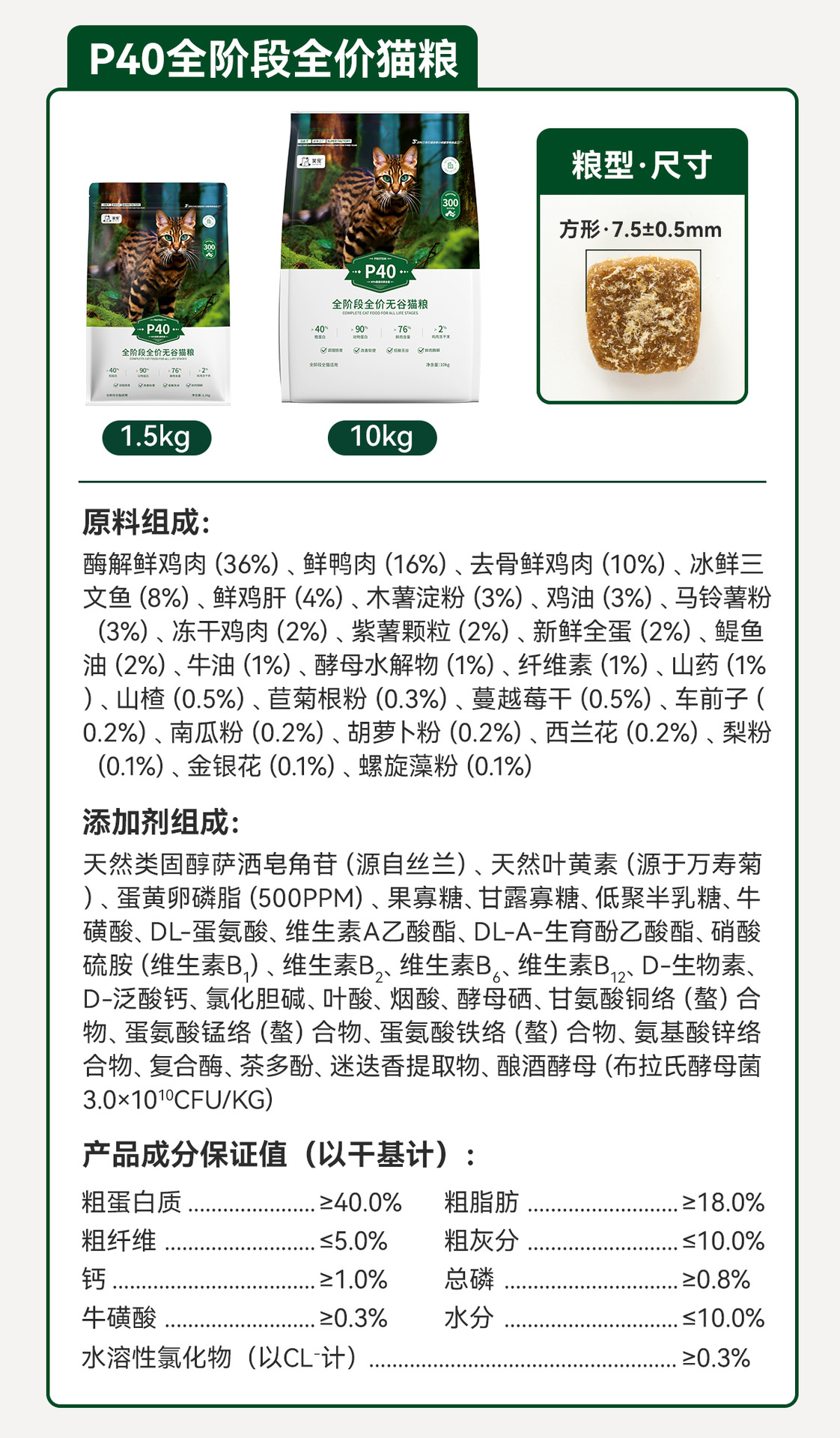 Корм для взрослых кошек с 25% белком (питательный баланс); Корм для кошек с полной ценой 30% белка (уход за мочой); Корм для кошек с 35% белком по полной цене (красивый и блестящий мех); 40% белка, полная цена корма для кошек (☆классический☆); 42% белка для котят (добавлено 76% свежего мяса); Полный корм для кошек с 45% белка (премиальная формула для набора веса и оптимального питания); Корм для кошек с 40% белком для желудочно-кишечного тракта [все, кто его покупал, сказали, что он хорош]