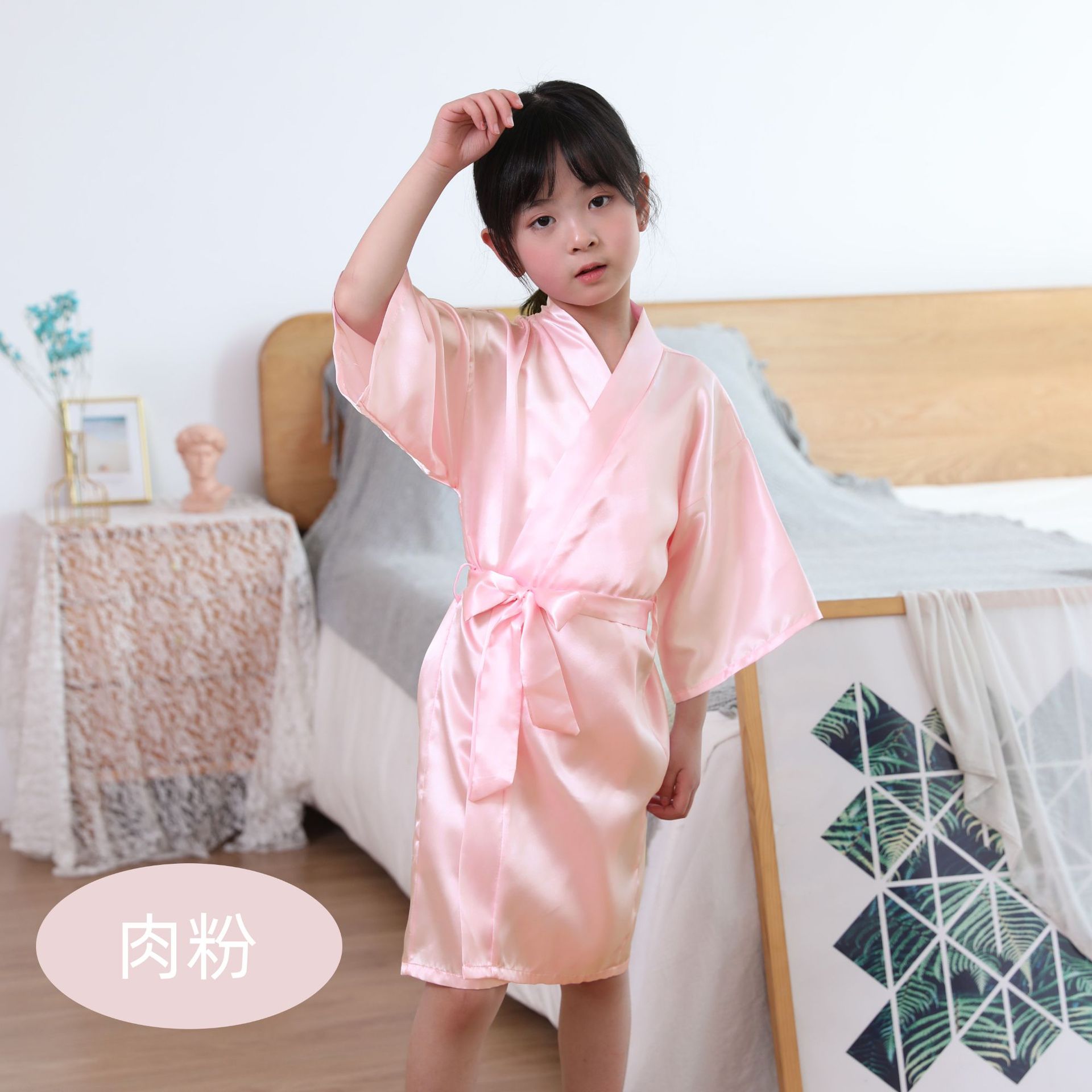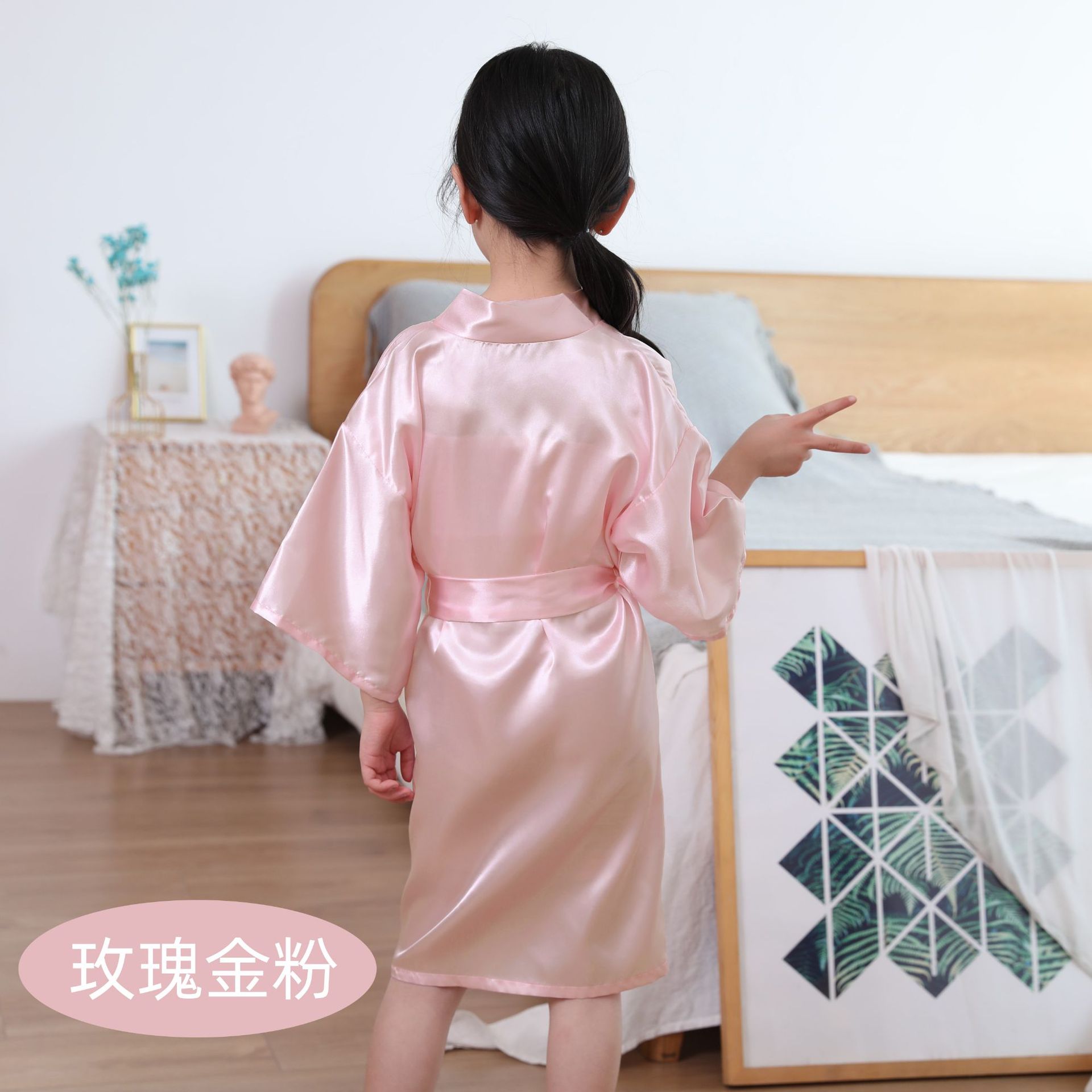 Трансграничное детское однотонное утреннее платье, имитация шелковой ночной рубашки, юбка, Атласный халат внешней торговли, длинный кардиган, кимоно Amazon