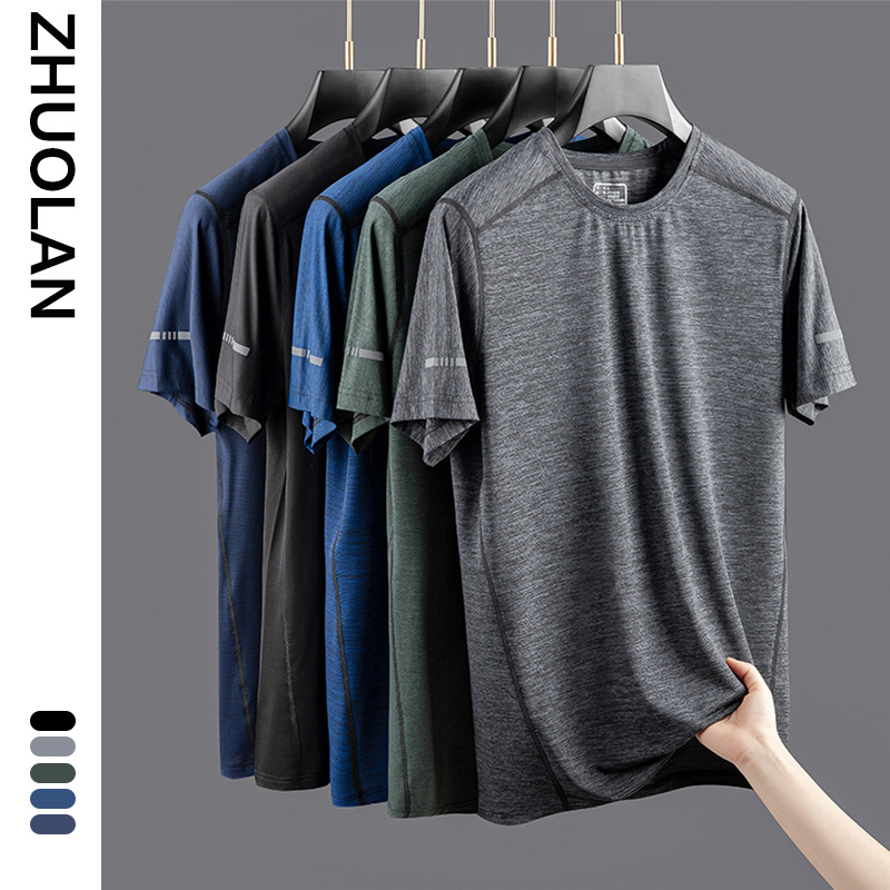 2022 Мужская Спортивная быстросохнущая одежда больших размеров, толстый парень, свободная одежда с круглым вырезом Ice Silk, топ с коротким рукавом, Молодежный, большие размеры, короткие T