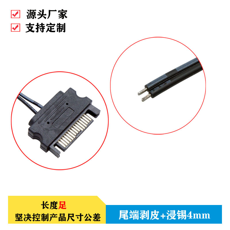 【产品接口】:一端SATA 15Pin 公头,另一端剥皮沾锡3mm。
