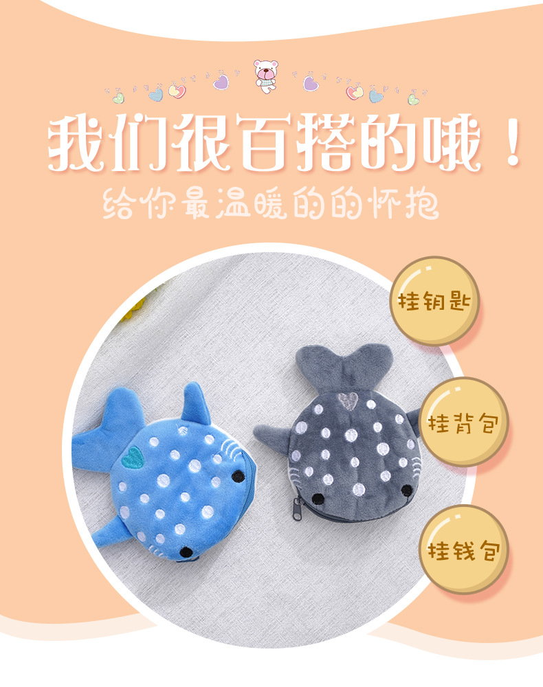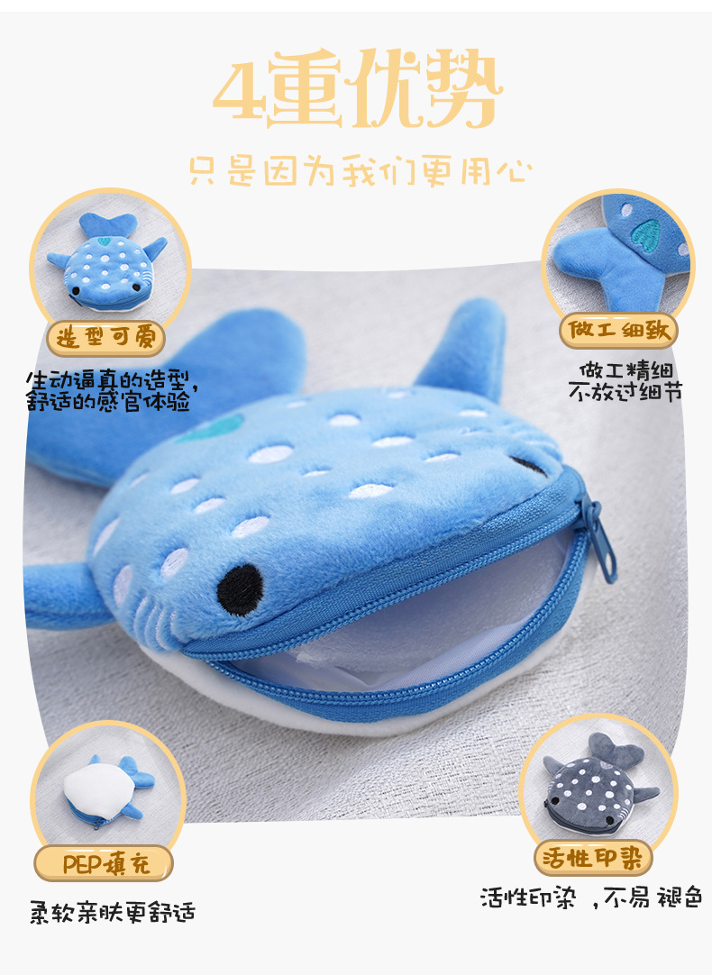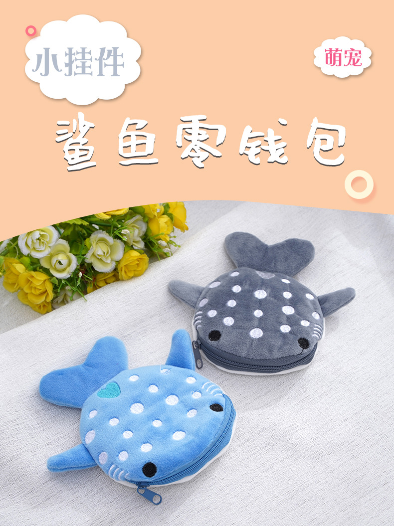 Новая модель мультяшная акула плюшевая сумка кошелька для монет милый подвеска кабель для передачи данных сумка на молнии маленький подарок оптом