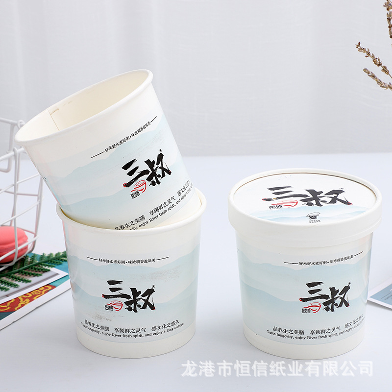 Одноразовые Крафт-Бумага Суп Чаша На вынос Упаковка Суп Ведро с крышкой Круглая Каша Ведро Жареный Йогурт Бумажный Чаша Качества Еды Настройка