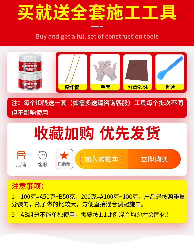 Ремонтная паста Yong'an для плитки, мрамора, раковин, унитазов, ванн, полов, керамики, клей AB, водонепроницаемый ремонт