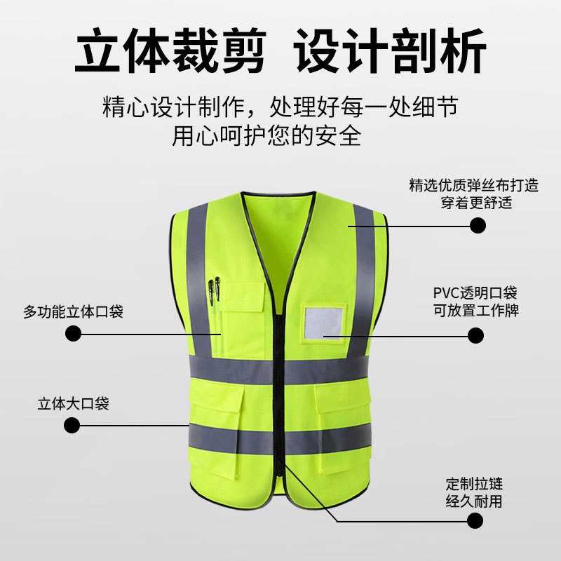Жилет изготовленный на заказ типографский санитарно-санитарное строительство здания безопасности светоотражающий жилет с несколькими карманными рекламными площадками