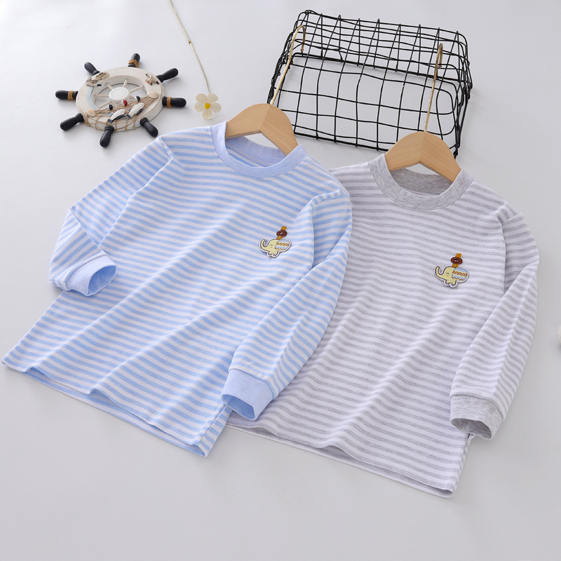Детская осенняя одежда, базовые футболки для мальчиков и девочек, трикотаж для детей среднего и старшего возраста, термободи для малышей с длинным рукавом, цельные топы, 1-12 полосок