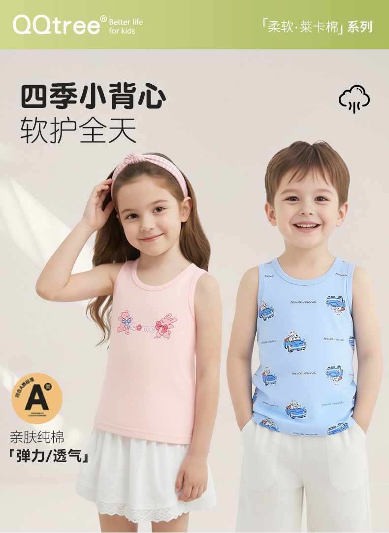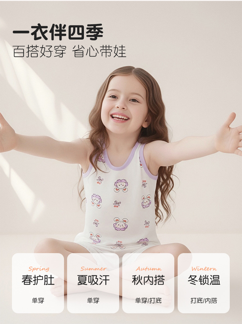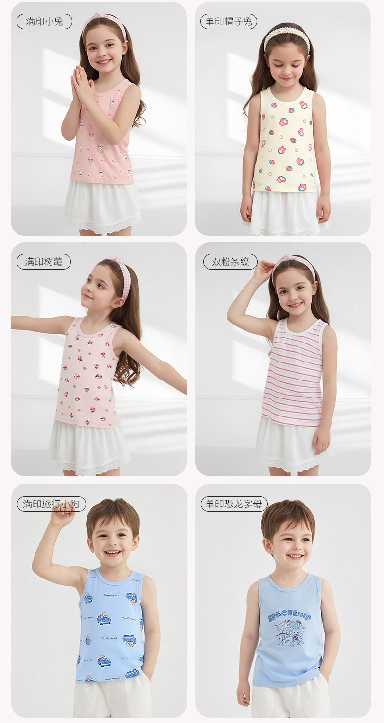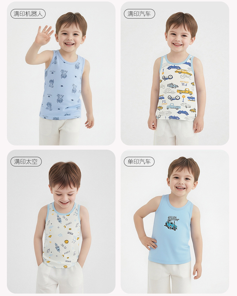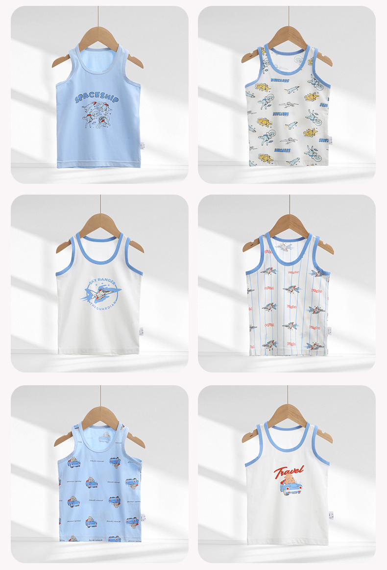 Детский осенний жилет из чистого хлопка для мальчиков и девочек, базовый жилет с мультяшным принтом, высокоэластичный всесезонный жилет из хлопка с лайкрой.