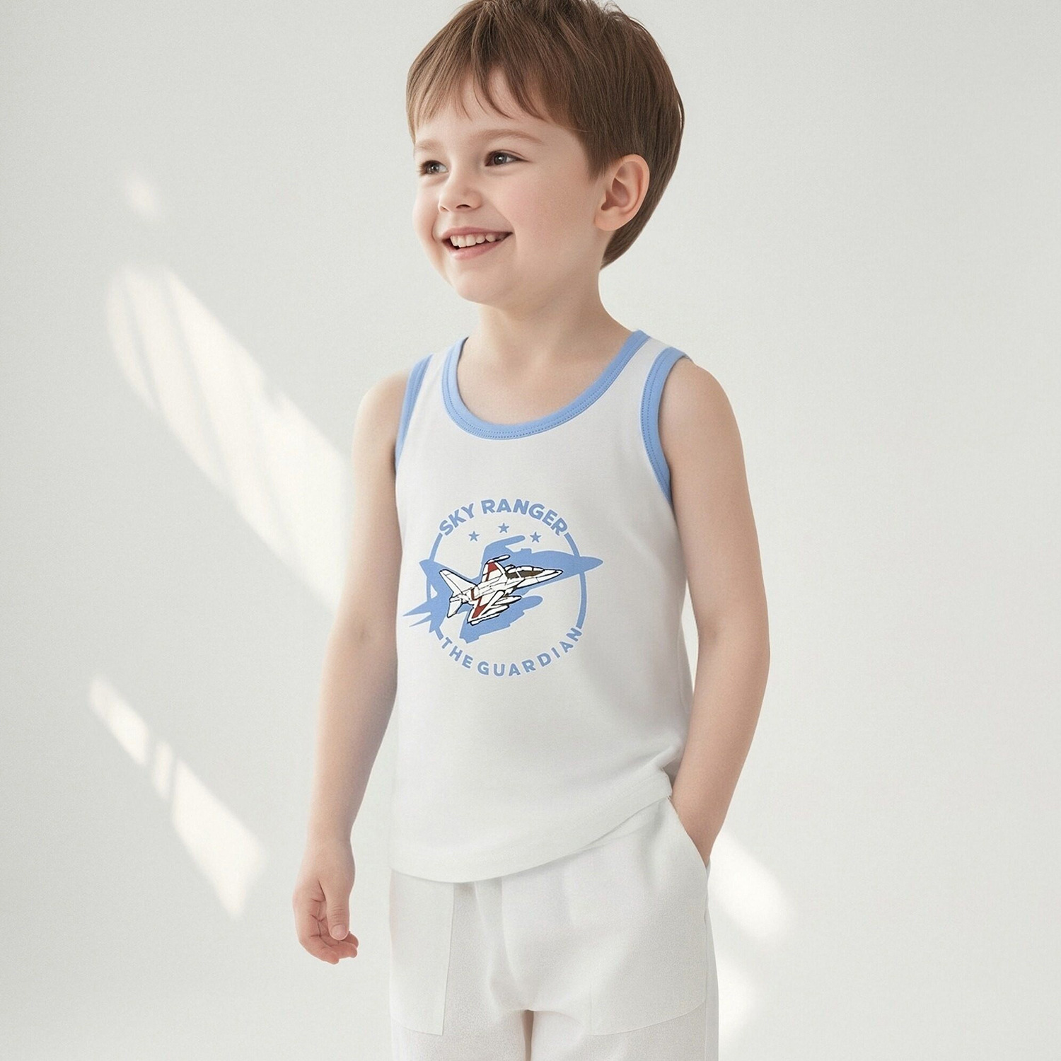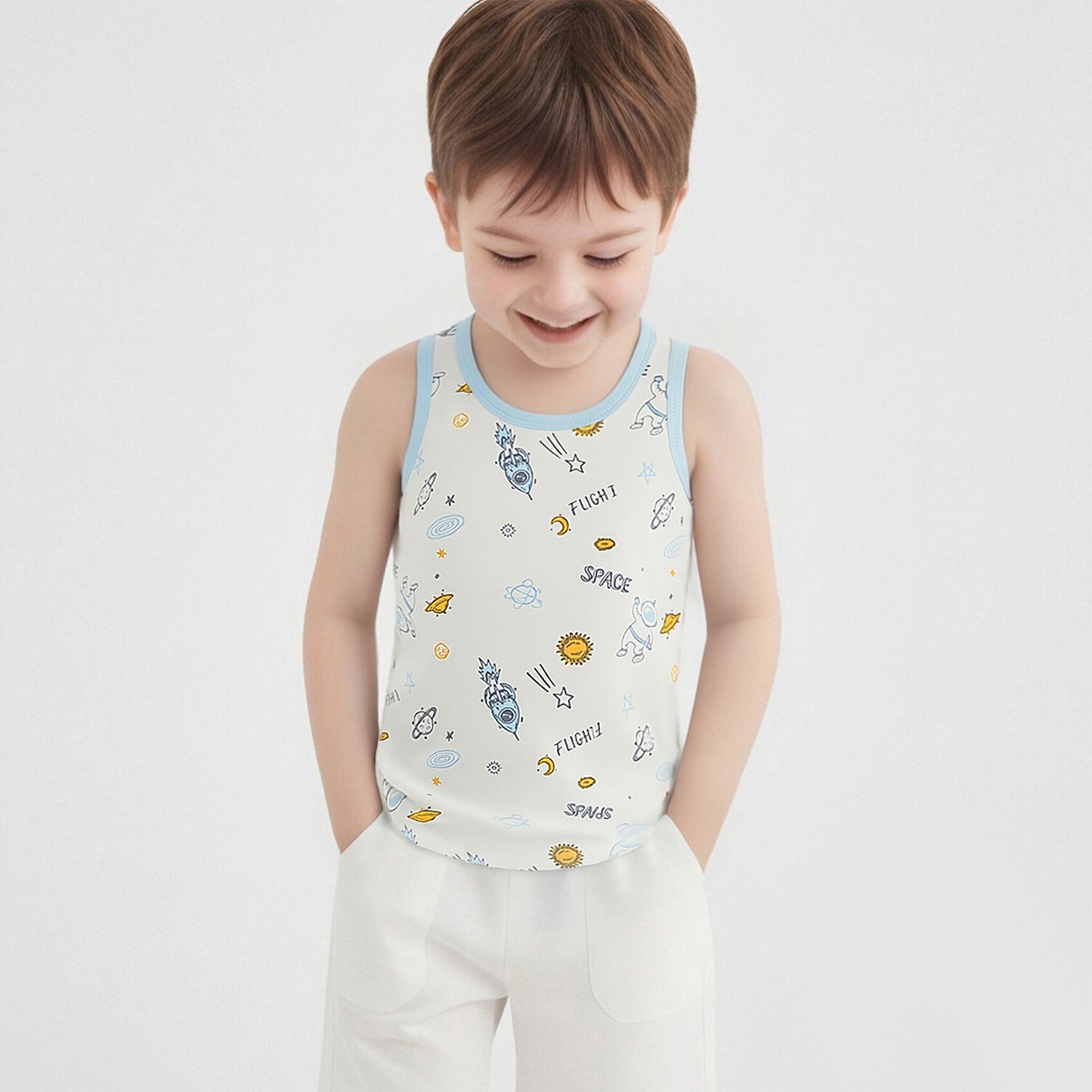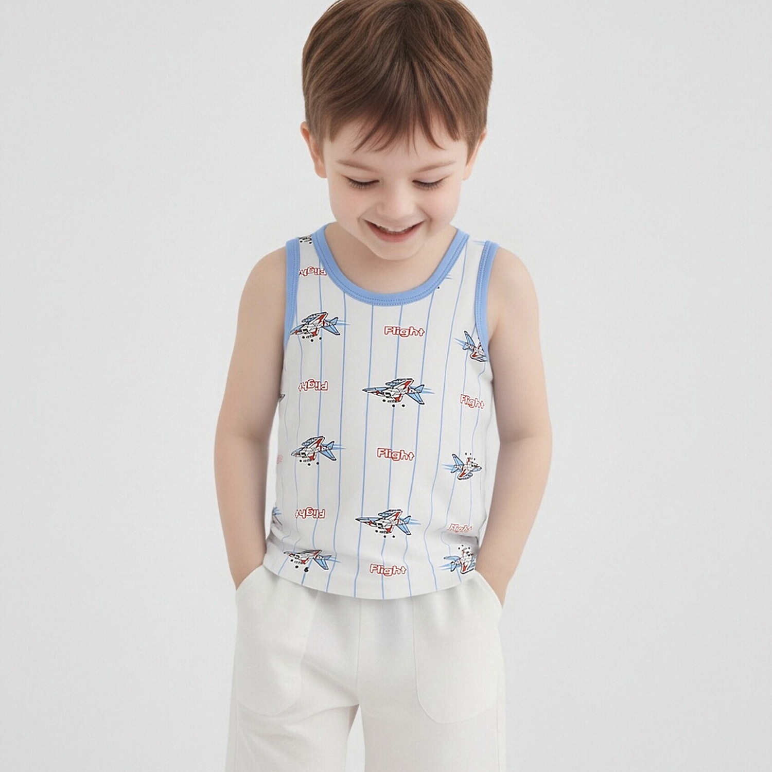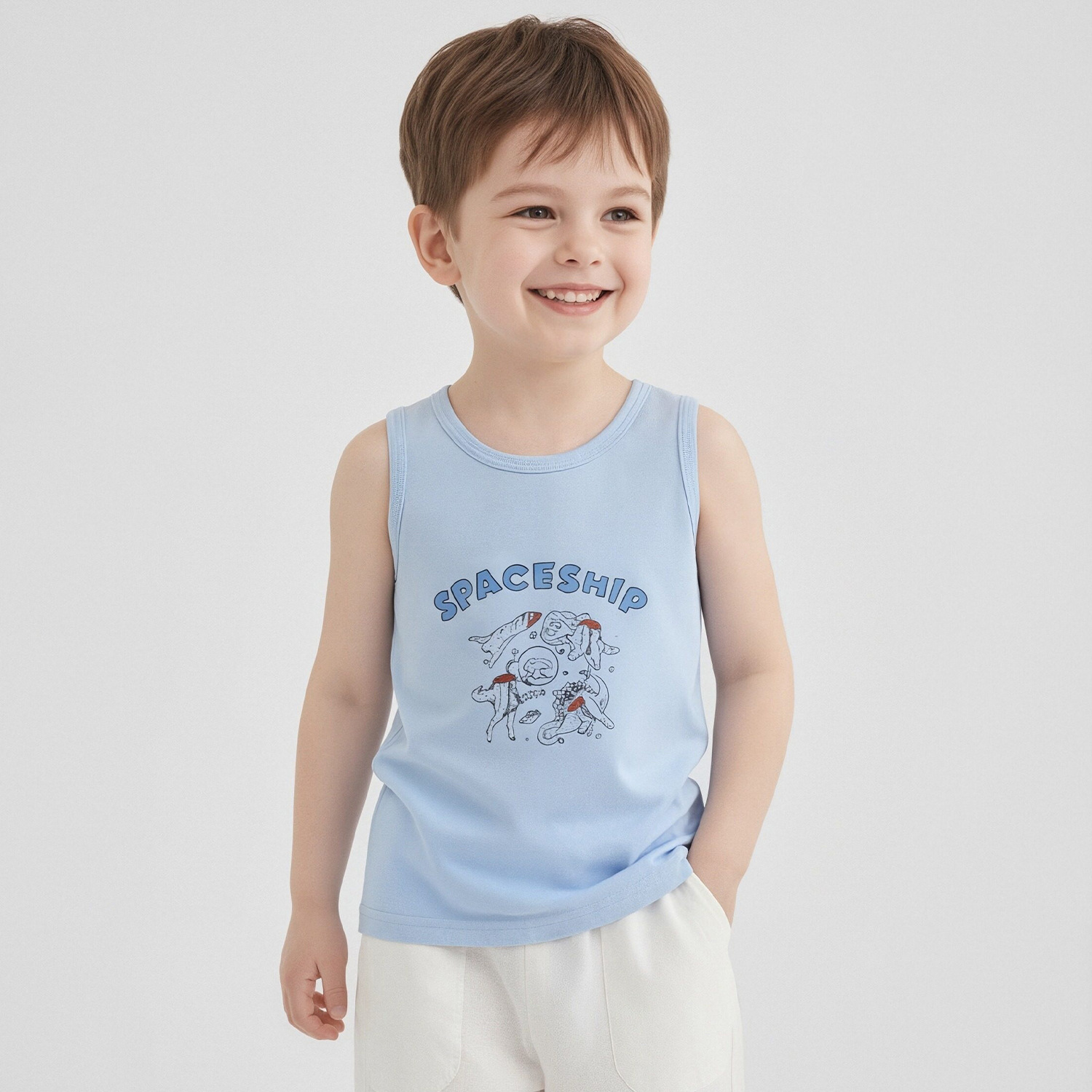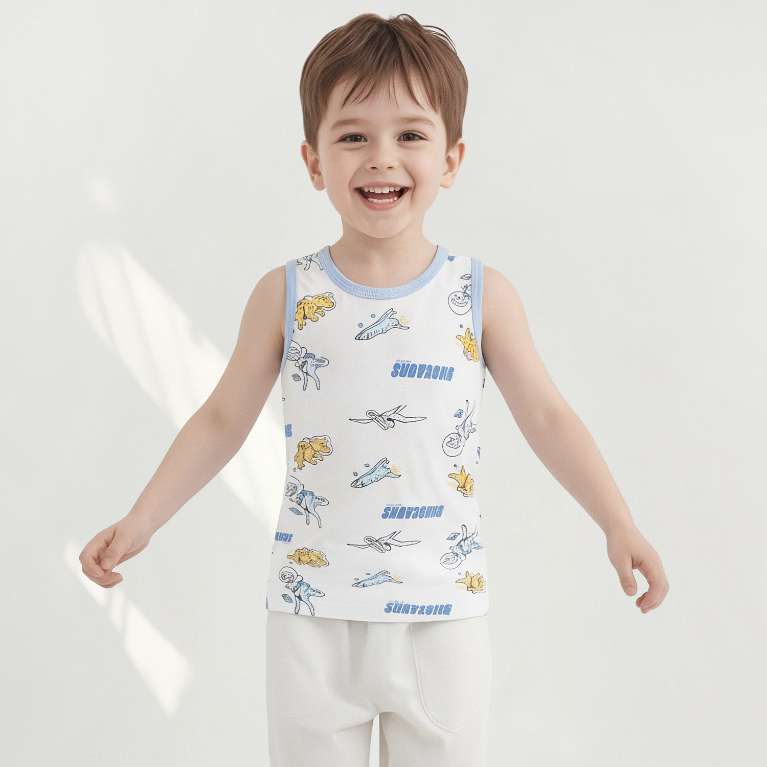 Детский осенний жилет из чистого хлопка для мальчиков и девочек, базовый жилет с мультяшным принтом, высокоэластичный всесезонный жилет из хлопка с лайкрой.