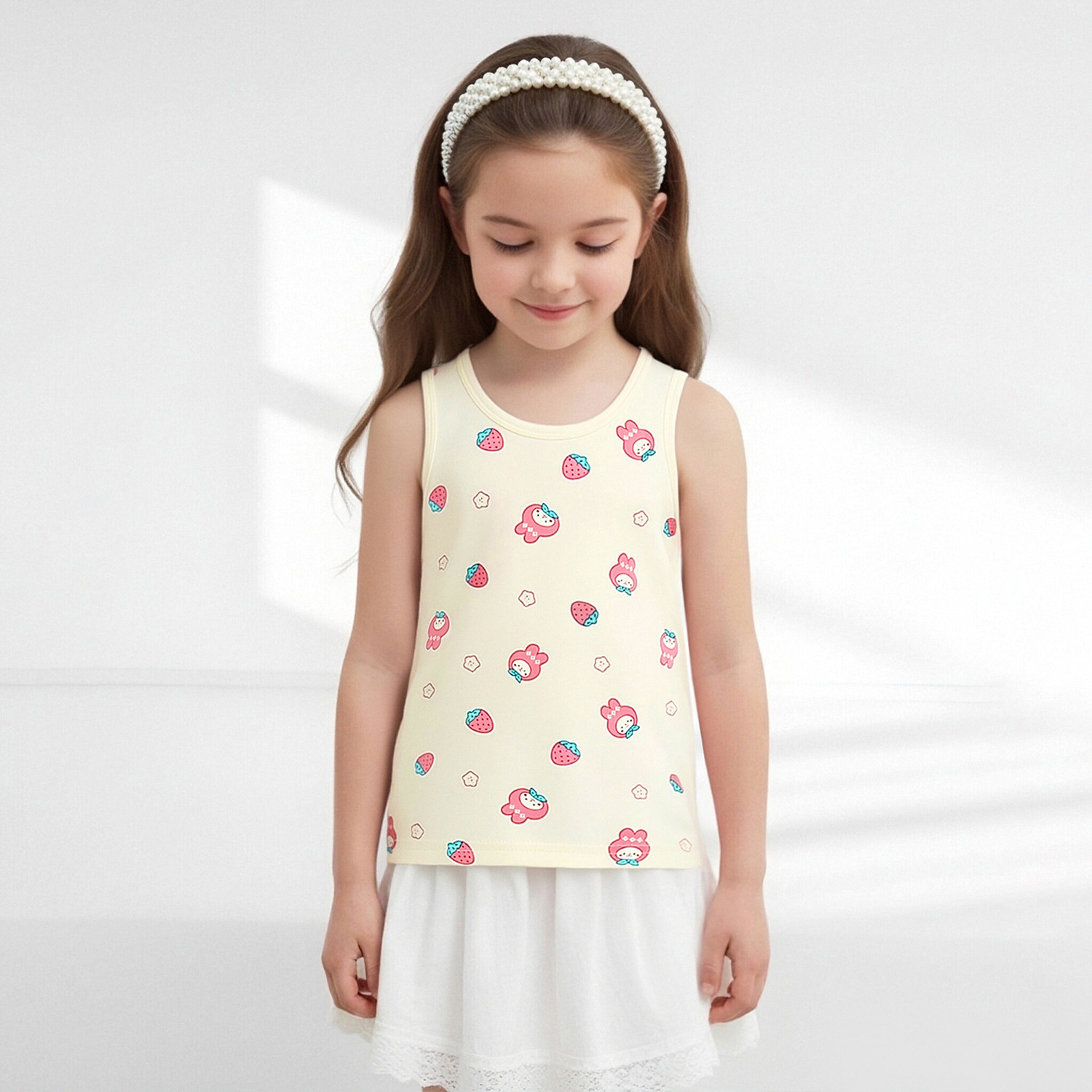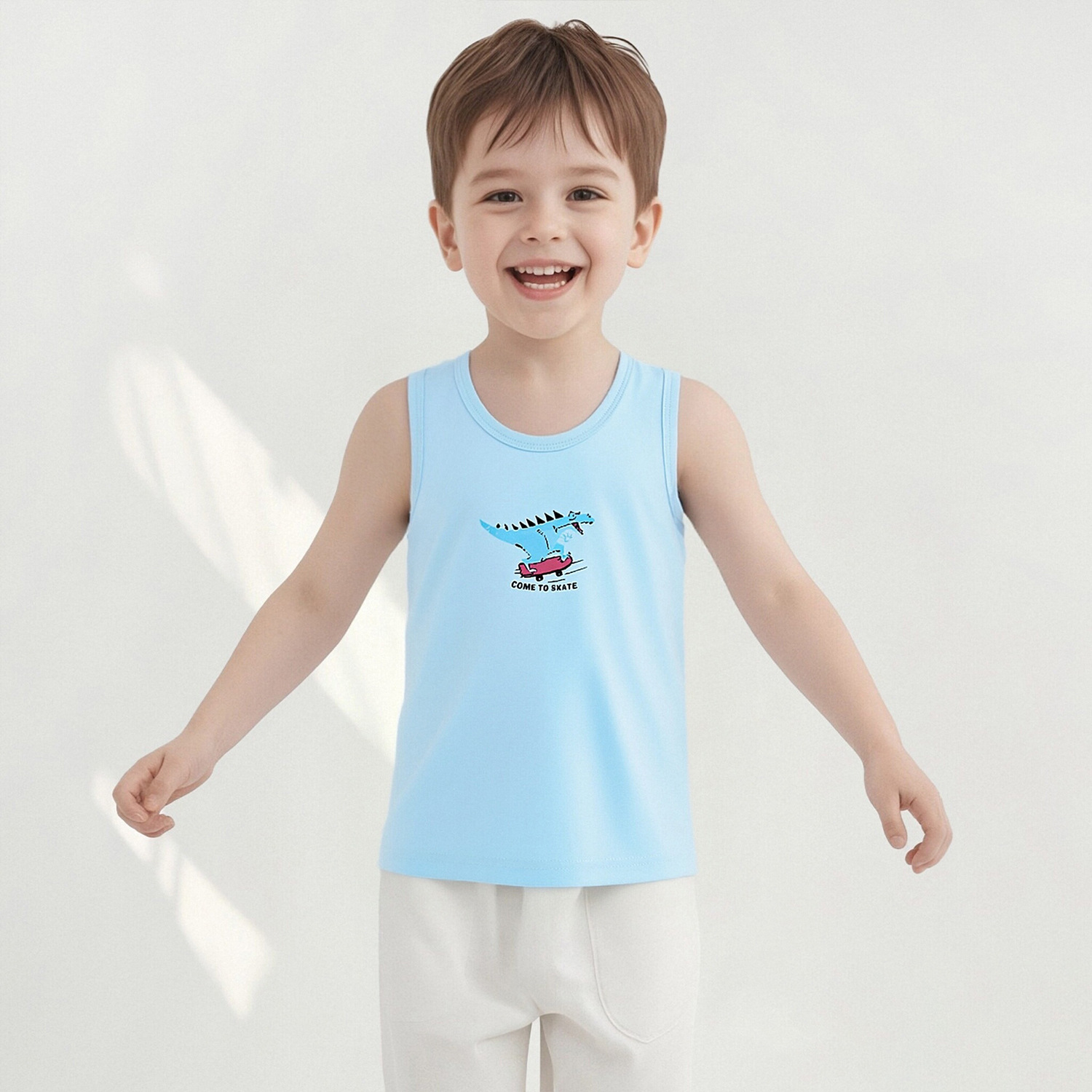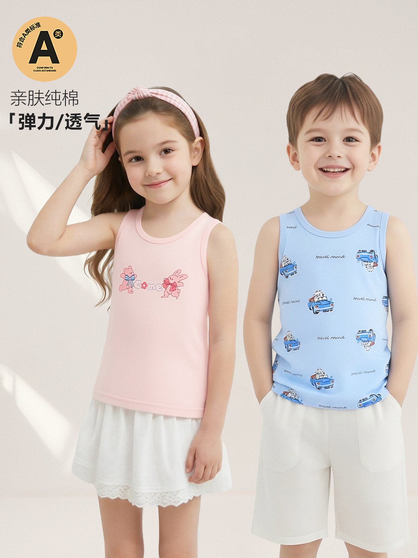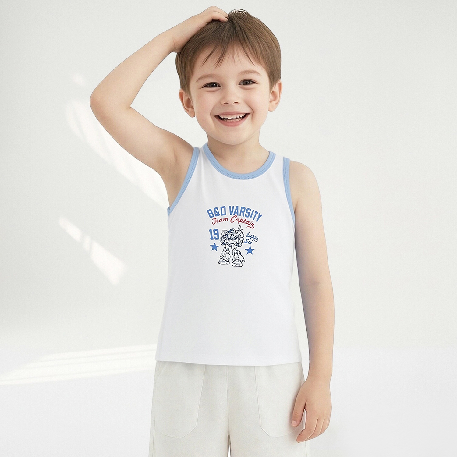 Детский осенний жилет из чистого хлопка для мальчиков и девочек, базовый жилет с мультяшным принтом, высокоэластичный всесезонный жилет из хлопка с лайкрой.