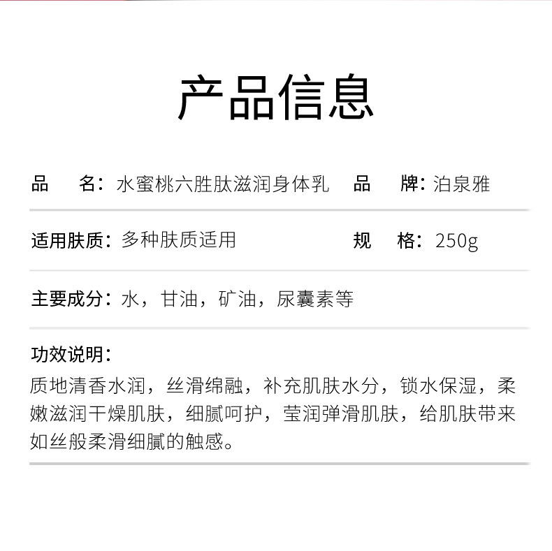 Персиковая шесть пептидов, очищающая соль для душа (новая) 250г; Увлажняющий лосьон для тела персикового шестипептидов (новый) 250 г; Персиково-арбутин Витамин Е Увлажняющее молоко (новое) 100г; Очищающее очищающее средство с персиковой аминокислотой (новое) 100 г; Бальзам для губ персиково-розовый (новый) 2,7 г; Омолаживающий отшелушивающий крем с персиковой фруктовой кислотой (новый) 140 г; Персиковая шестипептидная маска для глаз (новая) 80 г (60 патчей/30 пар); Персиковый очищающий скраб для тела (новый) 250 г