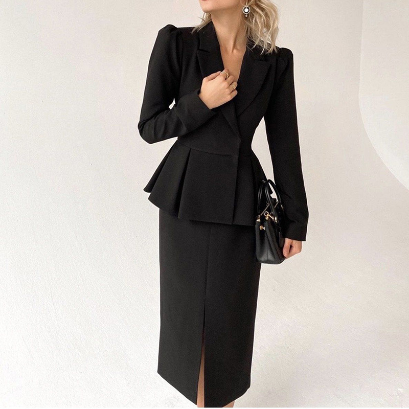 Европейский и американский 2024, новый осенний модный костюм с тонкой талией и воротником, однотонное профессиональное платье с длинными рукавами