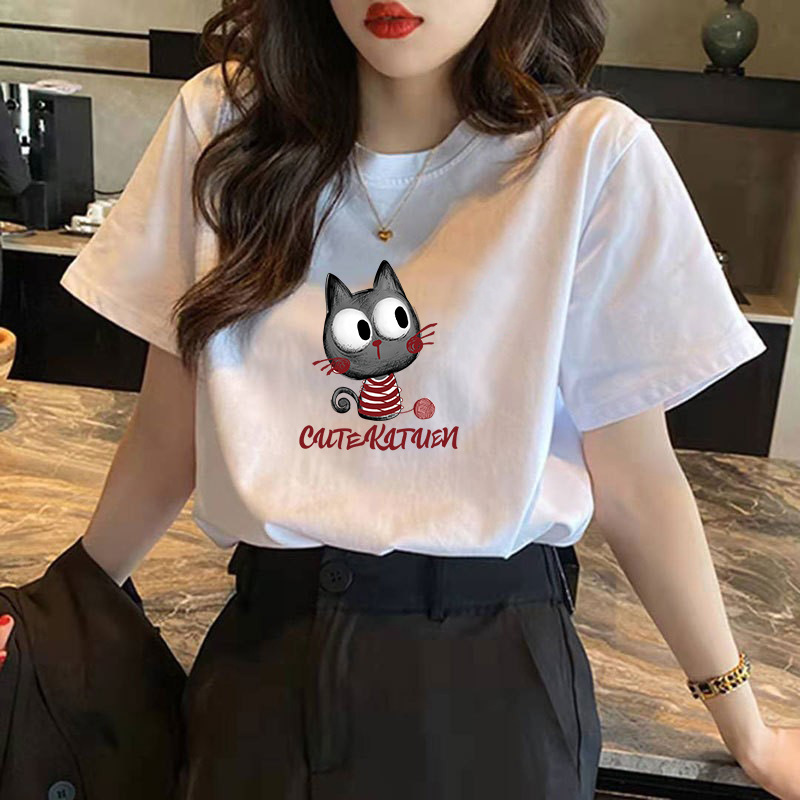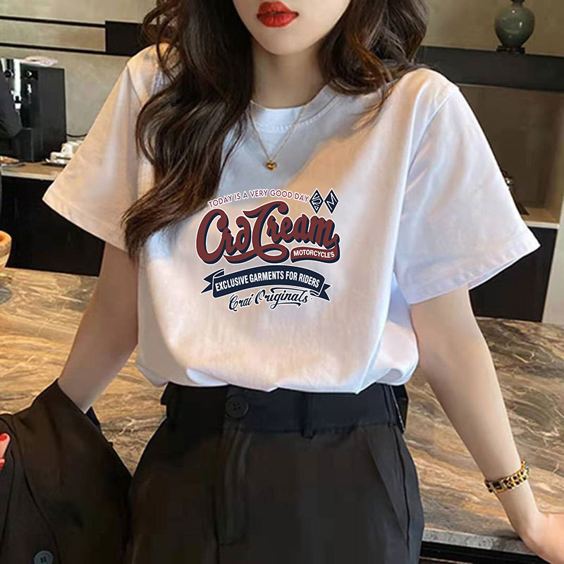 Женская футболка из чистого хлопка с коротким рукавом, летняя коллекция 2026, новый стиль Харадзюку, уникальный дизайн, белая футболка с коротким рукавом, тренд Instagram.