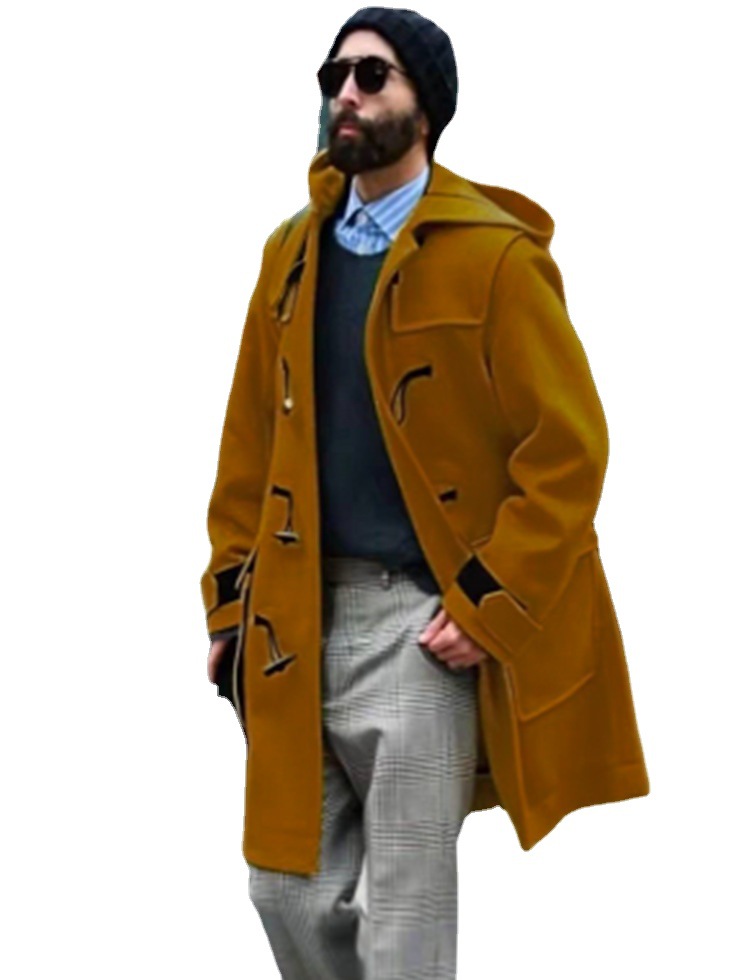 Шерстяное пальто Independent Station Explosions Мужское утолщенное пальто с капюшоном на угловых пуговицах Новое шерстяное пальто Amazon Wish