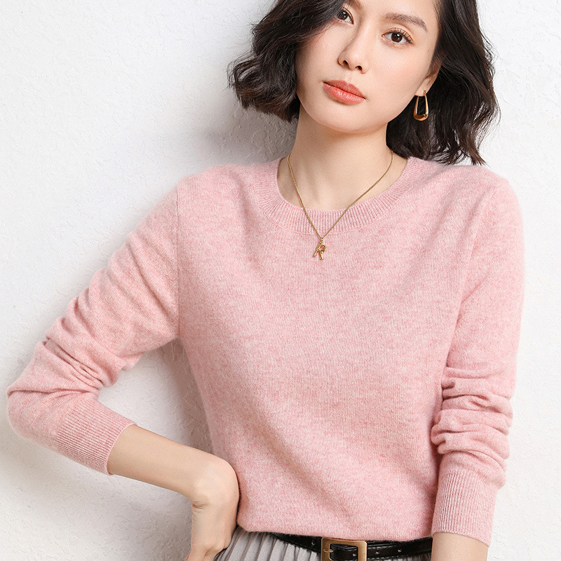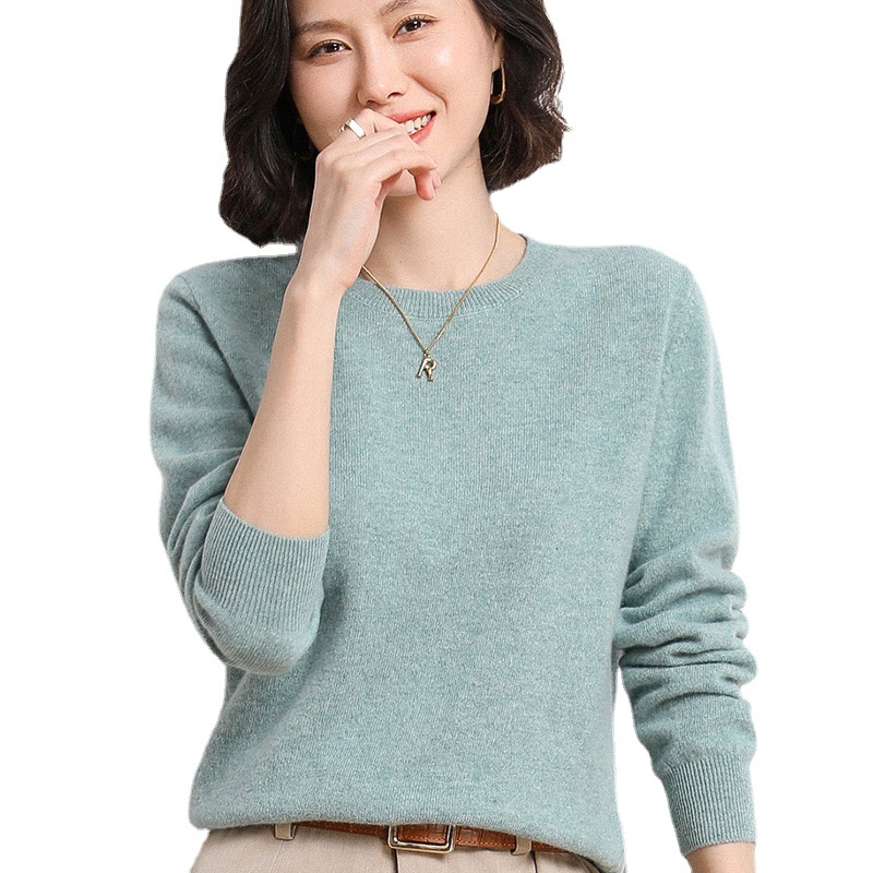 2023 весенний трансграничный женский свитер корейский однотонный с круглым вырезом внутри базовой рубашки вязаный свитер поколение волос