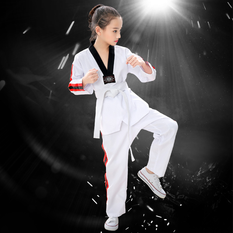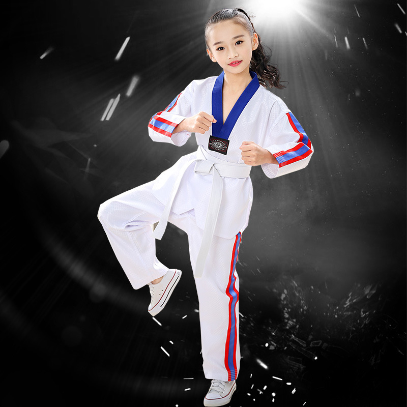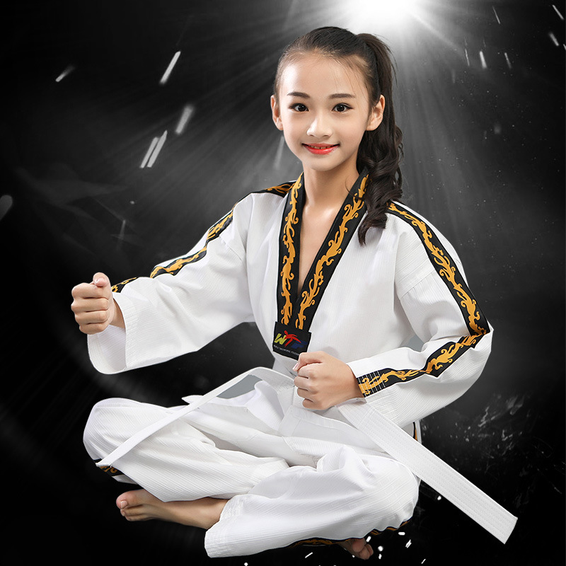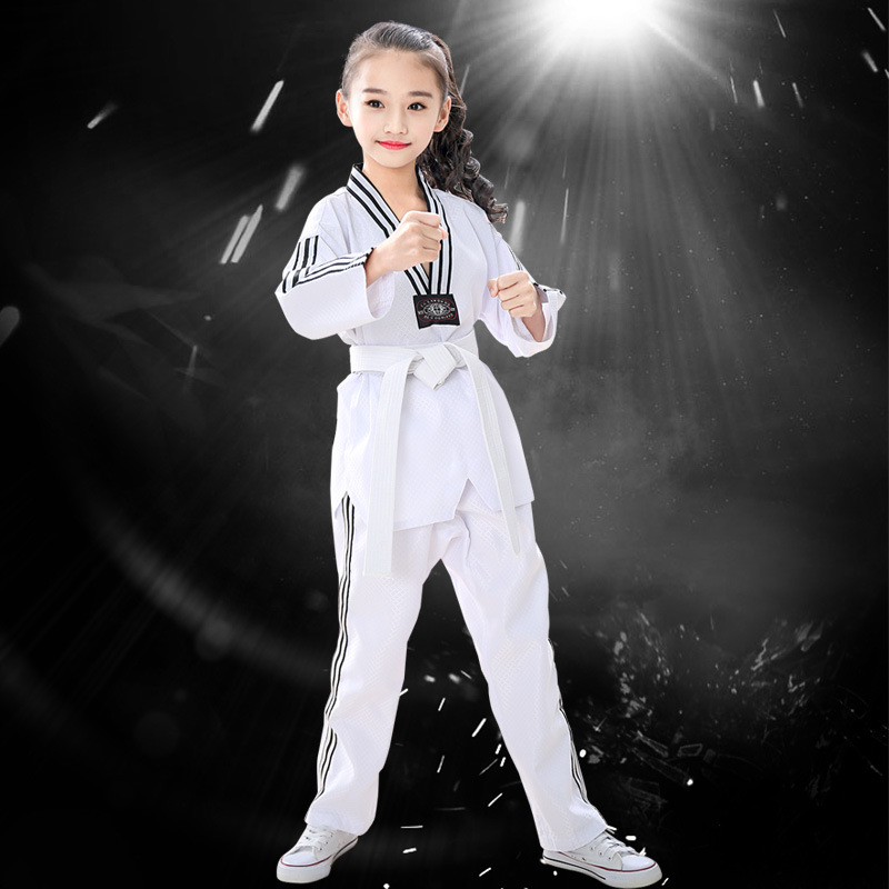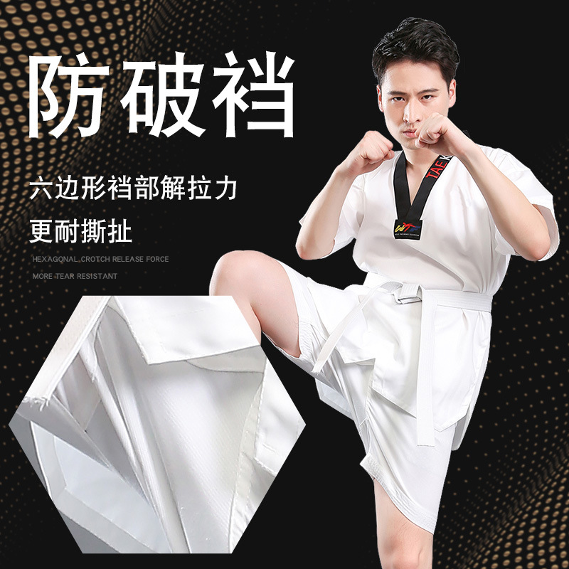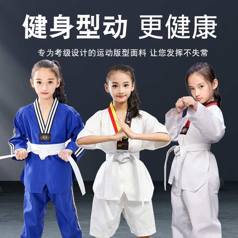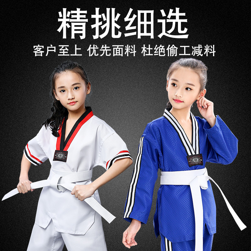 Детские и взрослые костюмы для тхэквондо из чистого хлопка с длинными и короткими рукавами, весенне-летняя одежда для тхэквондо, профессиональные тренировочные комплекты.