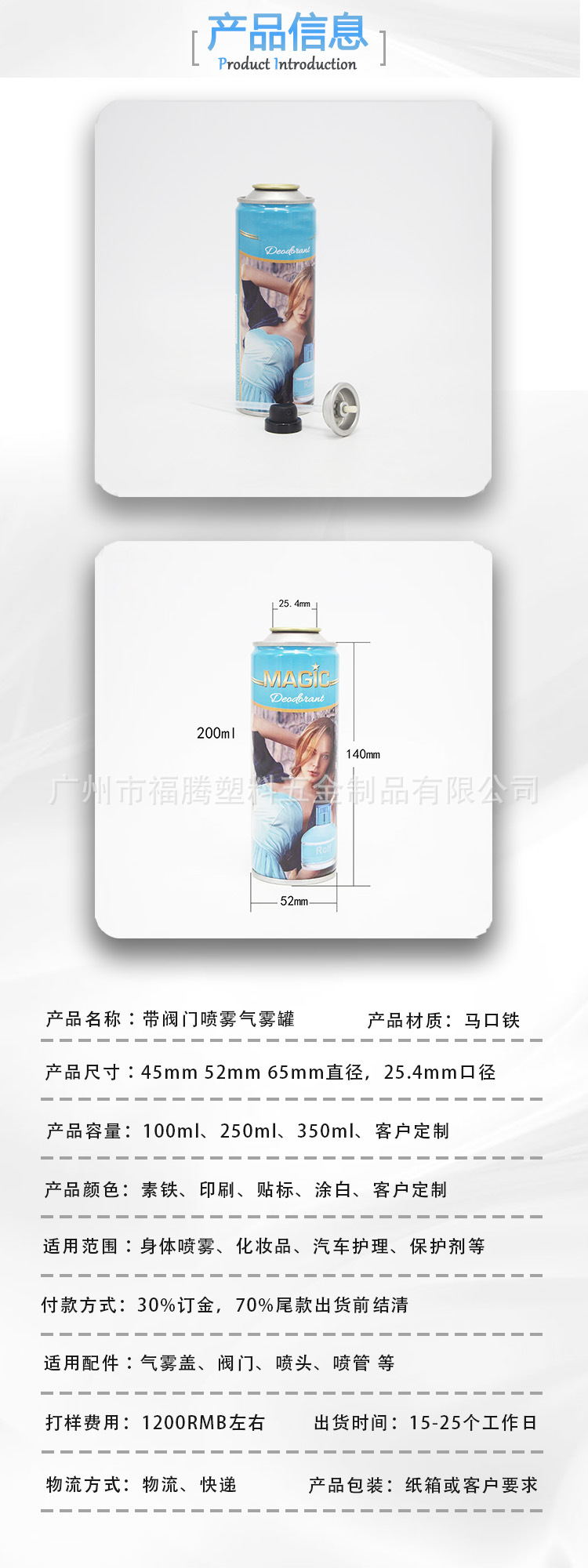 直径52mm带喷头阀门马口铁气雾罐 发喷气雾喷罐 体香露除臭剂喷雾罐
