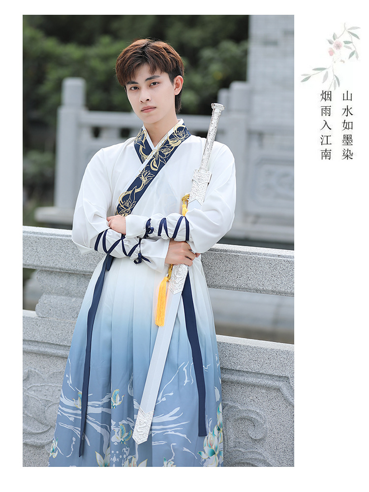 Китайский стиль Hanfu Мужская одежда большой размер красивый костюм, боевые искусства, китайский стиль ретро ученого, мужской костюм