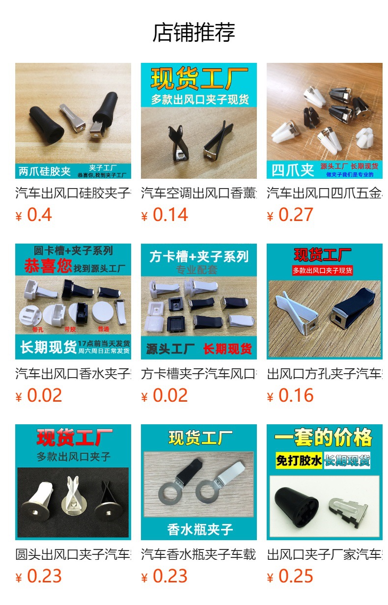 3.本公司专业开模生产出风口夹子,店内还有很多其它款式现货,或开模定制,请联系客服。