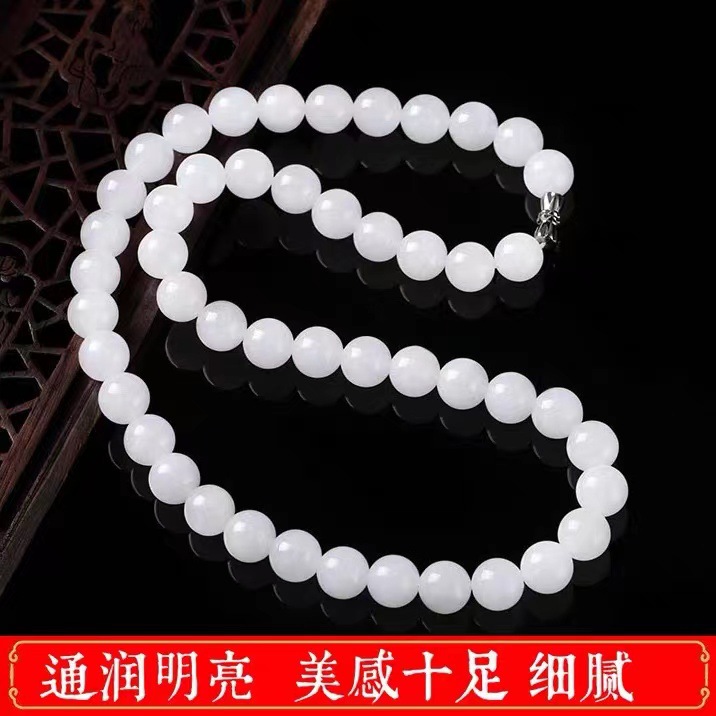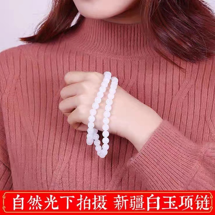 Натуральное ожерелье из нефрита Синьцзян Хетянь, кулон из козьего жира, белое Нефритовое ожерелье, Женская цепочка из бисера, бусины, подлинные товары