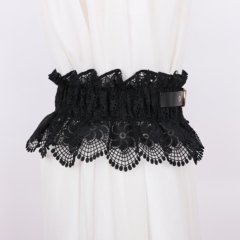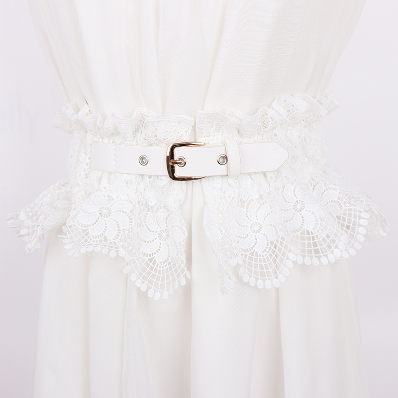 Женская широкая юбка с кружевным поясом, модное универсальное декоративное платье-рубашка, внешняя кружевная петля с талией, стильное уплотнение