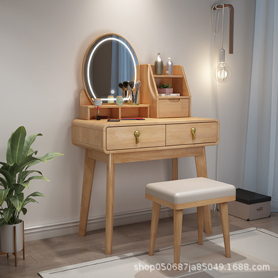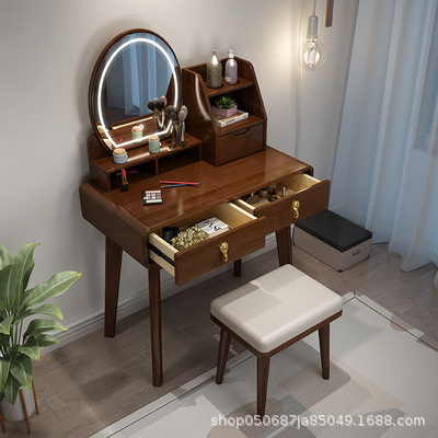 Туалетный столик из массива дерева в скандинавском стиле, туалетный столик в стиле лёгкой роскоши и высокого класса, простой туалетный столик для небольшой квартиры, туалетный столик для спальни с подсветкой