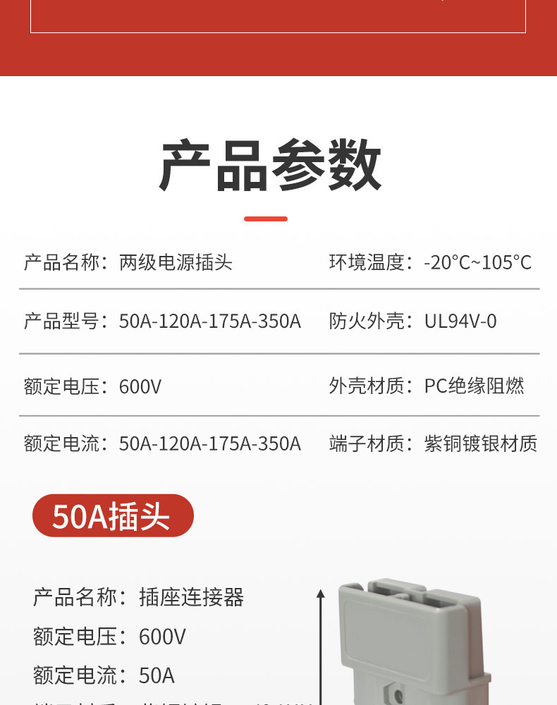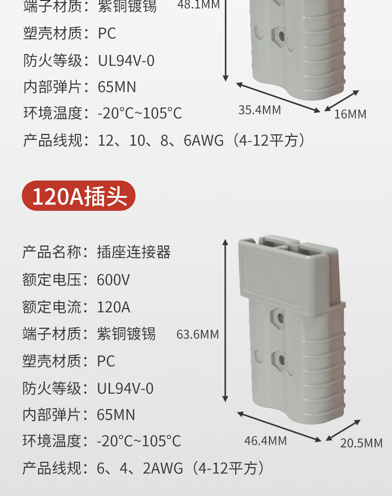 Подходит для вилки Anderson, разъем литиевой батареи 50A600V, автомобильное зарядное устройство 120A600V