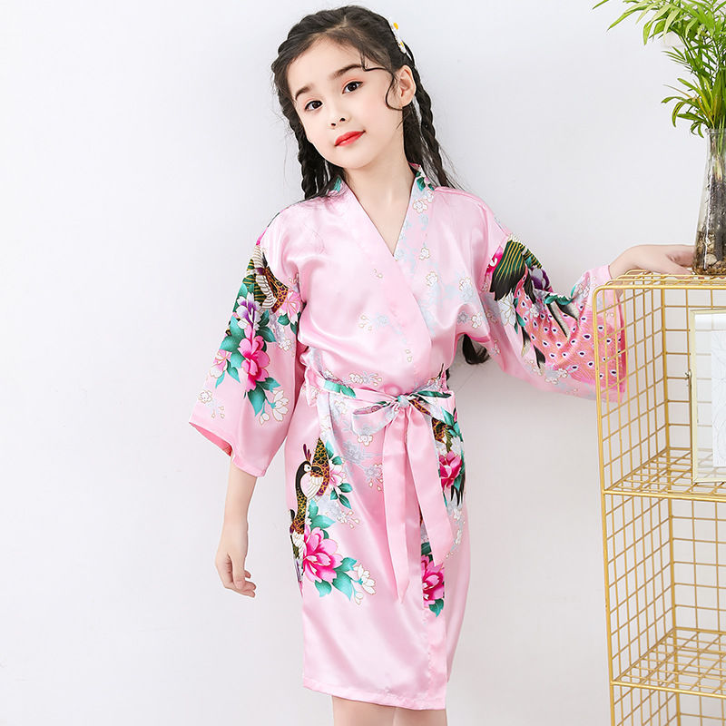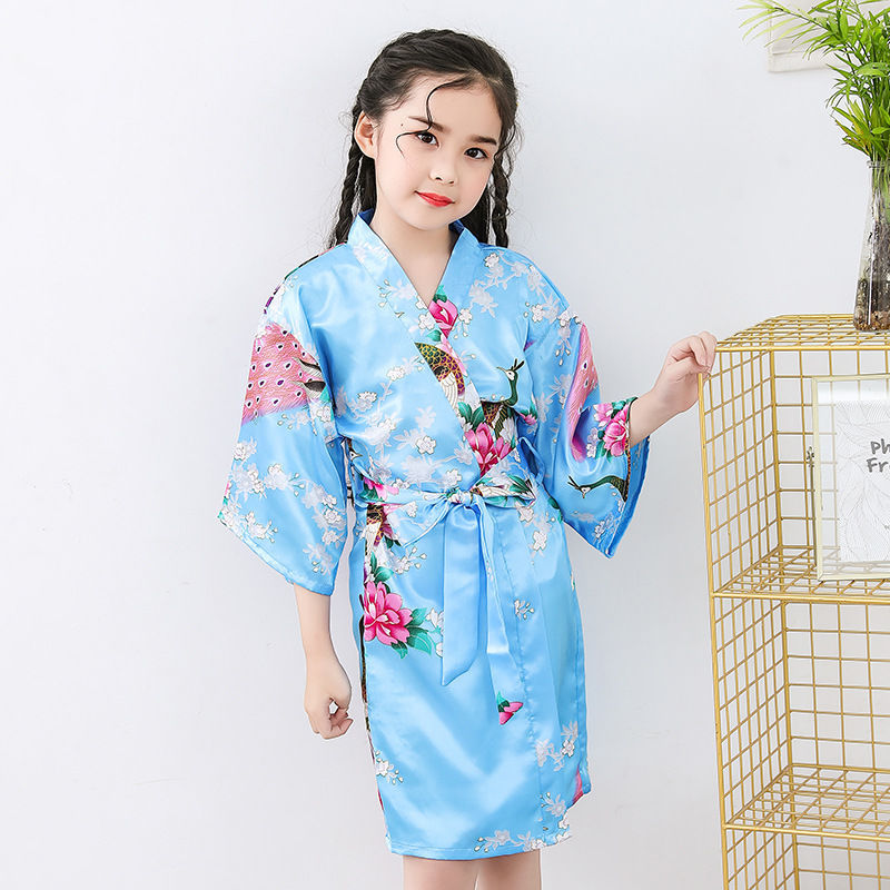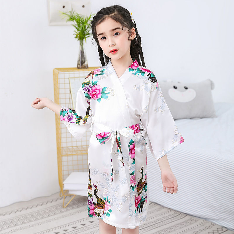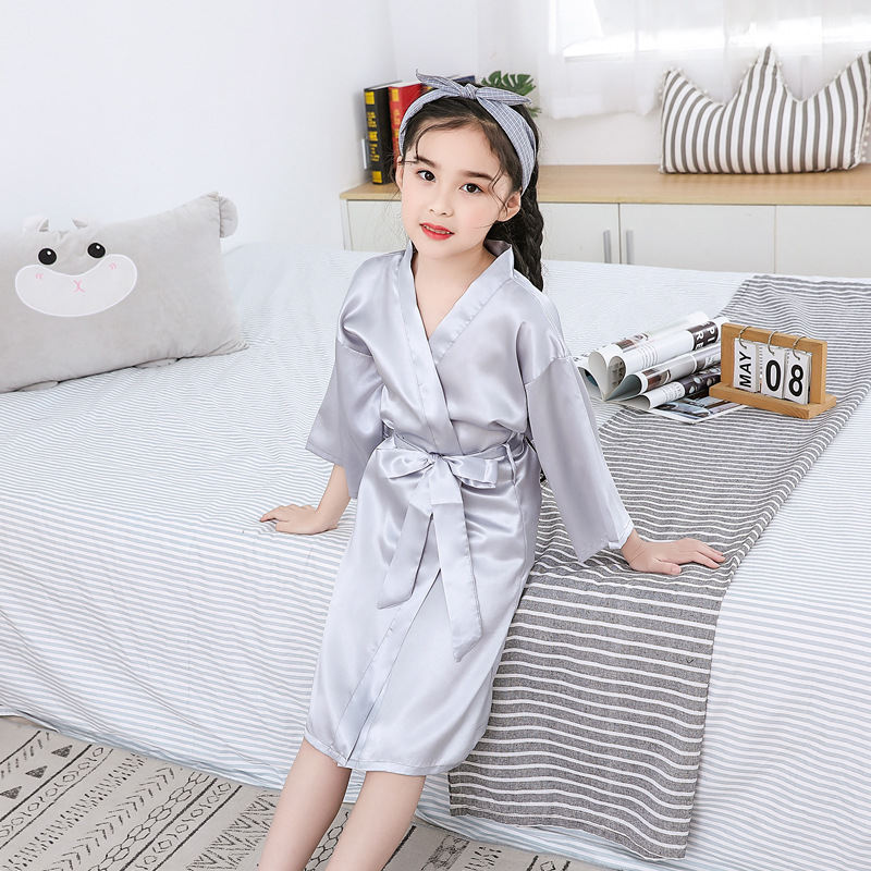Трансграничная детская пижама из ледяного шелка, летняя ночная рубашка, кимоно CUHK, домашняя одежда для девочек, халат, тонкий атлас из искусственного шелка