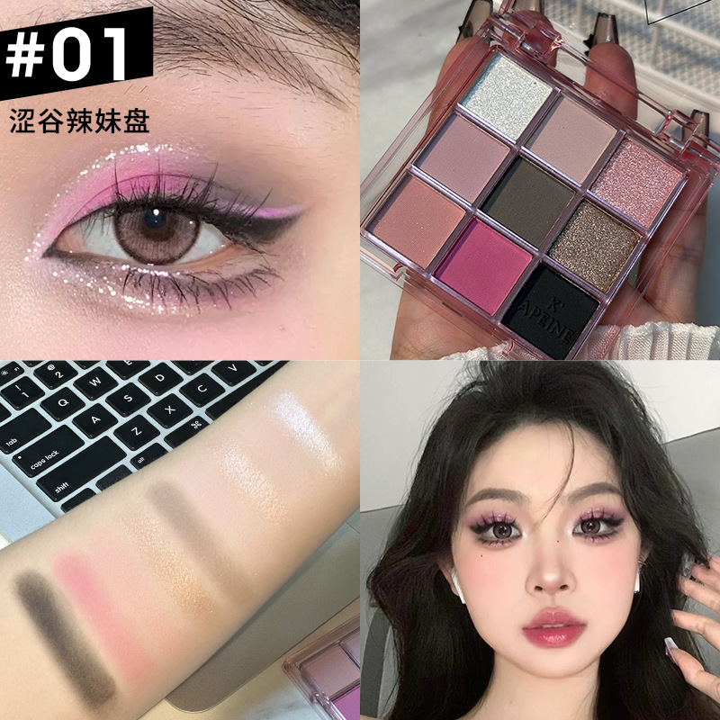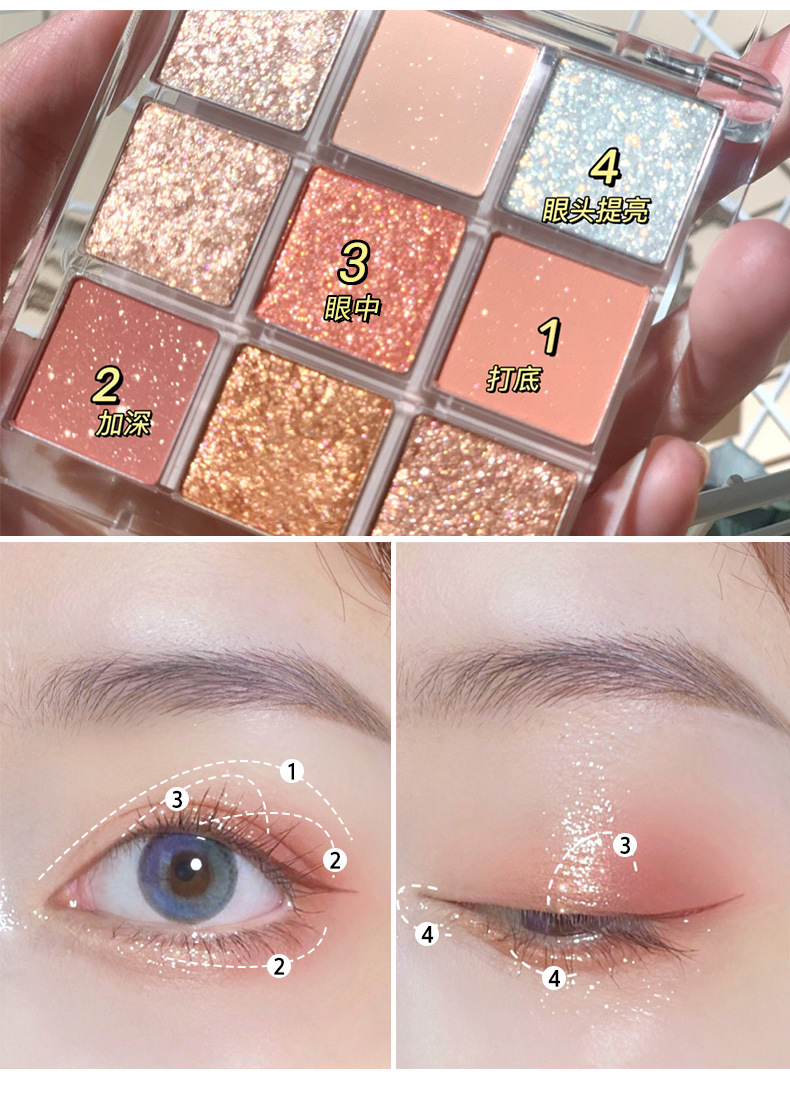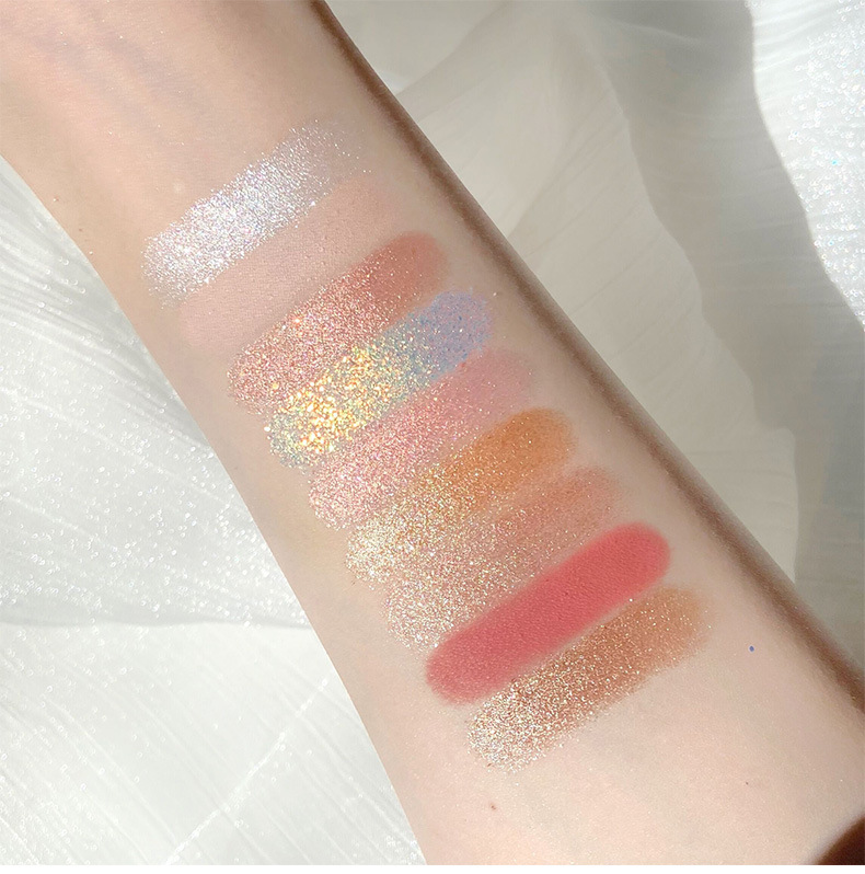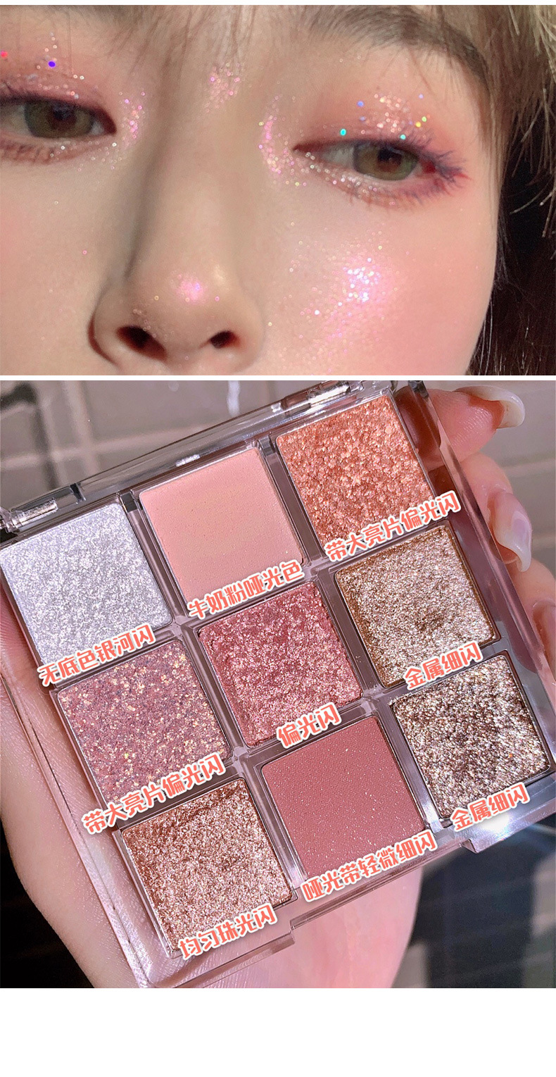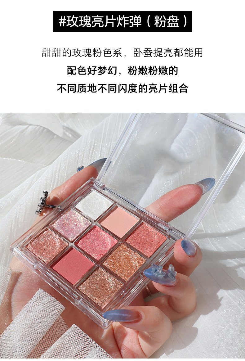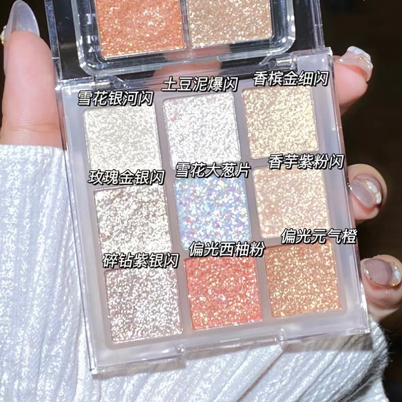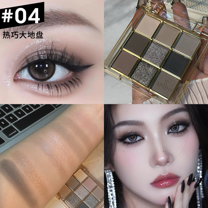 Палитра теней для век K'APEINE, прозрачная, девятицветная, с блестками, в тон земли, акриловая, девять оттенков, для создания рождественского макияжа с эффектом снежинок и дымчатого стиля.