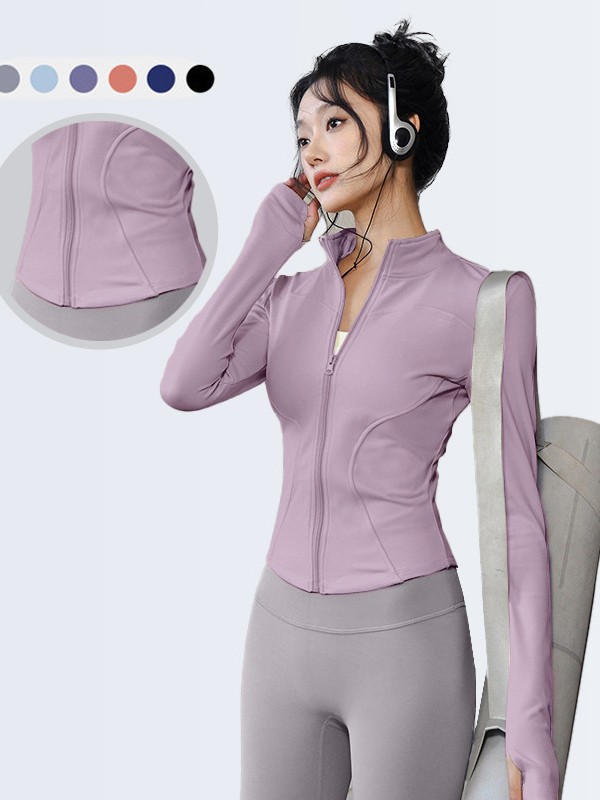 Одежда для йоги с воротником-стойкой, куртка, женская одежда для бега, спорта, фитнеса, с длинными рукавами, защита от солнца, быстросохнущая одежда, топ для йоги в одном стиле lulu