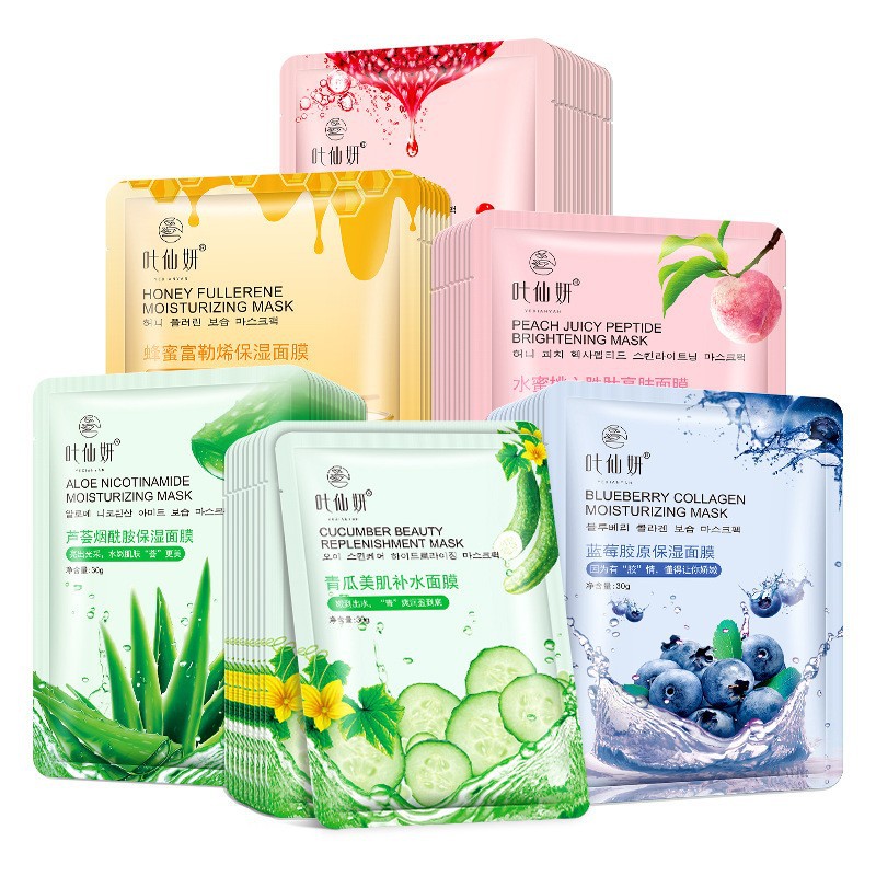 Ye Xianyan-Черничная коллагеновая увлажняющая маска 30 г; Ye Xianyan-Фуллереновая увлажняющая маска с медом 30 г; Ye Xianyan-Алоэ никотинамид увлажняющая маска 30 г; Увлажняющая маска Ye Xianyn-олигопептидная маска 30 г; Ye Xianyan-Огуречная увлажняющая маска для мышц 30 г; Маска для кожи Ye Xianyan-Peach Lappy 30 г