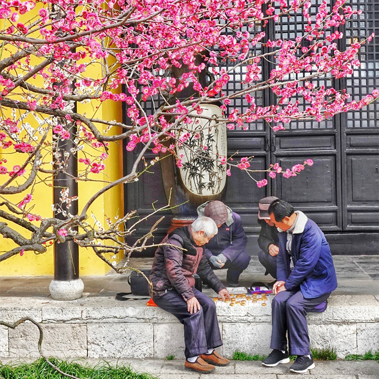 应用:在园林、绿地、庭园、风景区,可孤植、丛植、群植等;也可屋前、坡上、石际、路边自然配植。若用常绿乔木或深色建筑作背景,更可衬托出梅花玉洁冰清之美。如松、竹、梅相搭配,苍松是背景,修竹是客景,梅花是主景。古代强调"梅花绕屋"、"登楼观梅"等,均是为了获得佳的观赏效果。另外,梅花可布置成梅岭、梅峰、梅园、梅溪、梅径