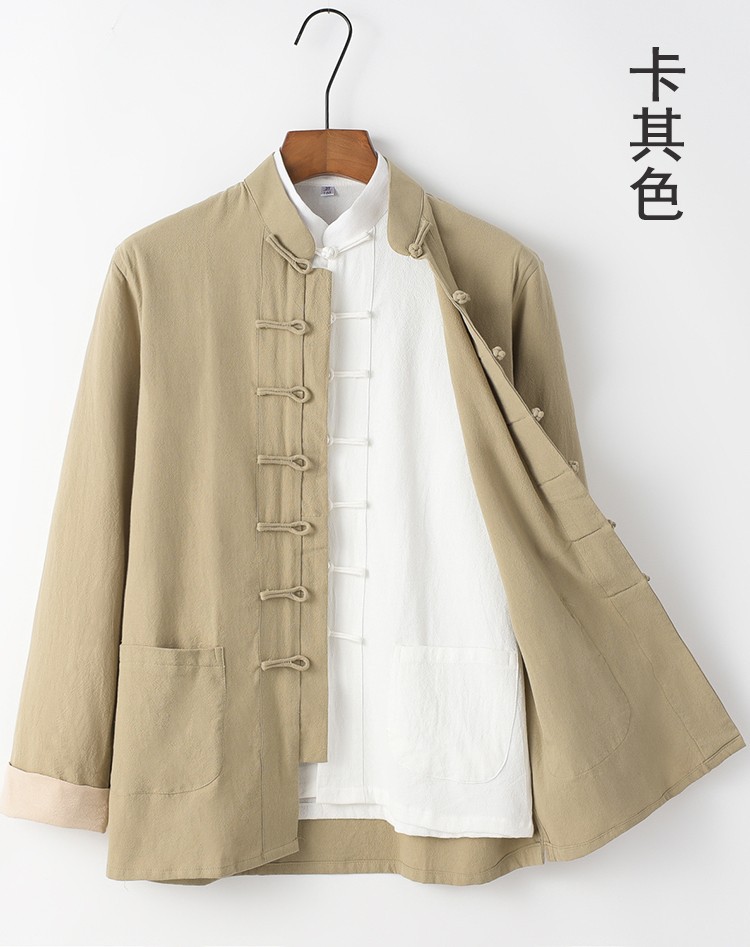 Весенне-летний молодежный костюм Ханьфу из хлопка и льна в китайском стиле, унисекс, новый китайский пиджак, костюм Чжуншань, повседневная одежда в стиле Тань.