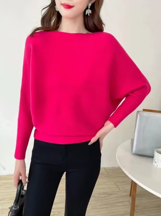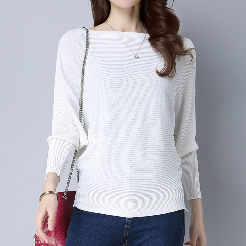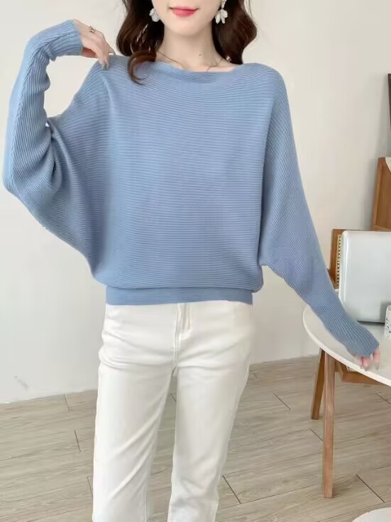 2022 весна и осень новая рубашка дольмана женский свитер больших размеров в Корейском стиле вязаный свитер с одним воротником персонажа свободная Базовая рубашка