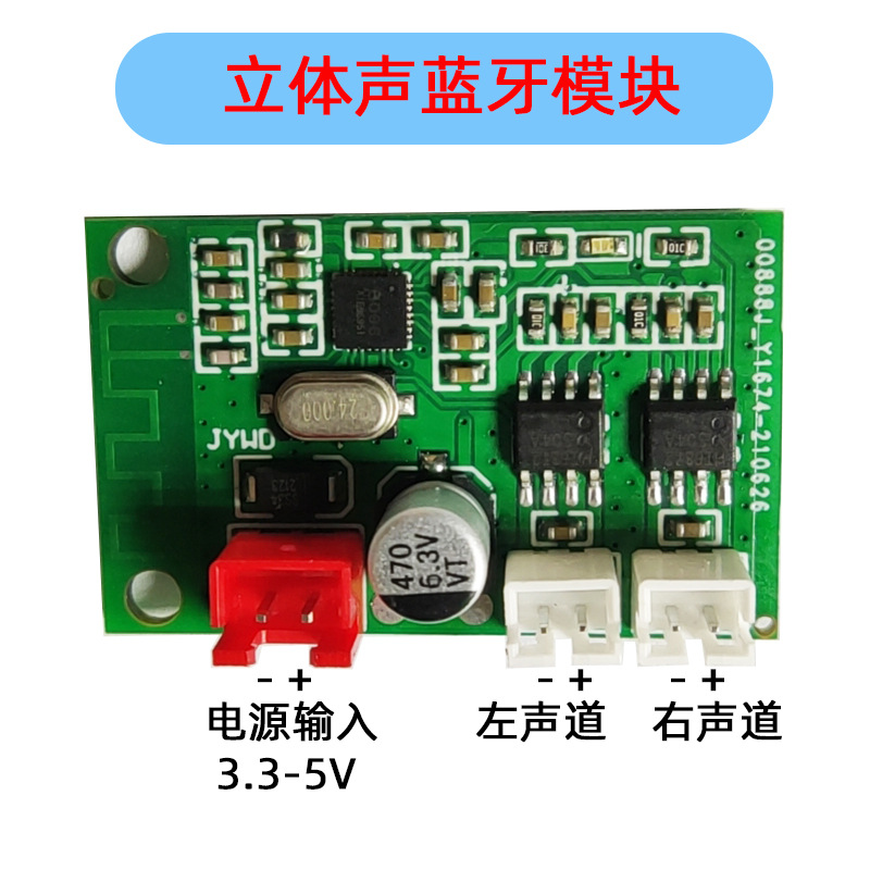 4.蓝牙、功放功能二合一,接电源 接喇叭即可使用,小空间大用途。减少生产接线装配麻烦,提高生产良品率。