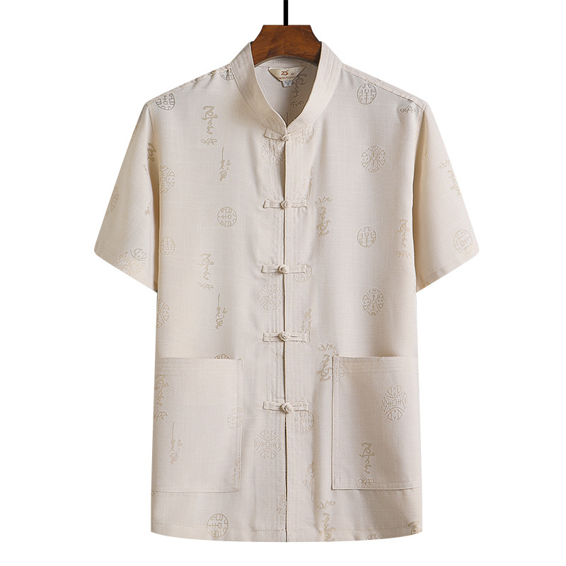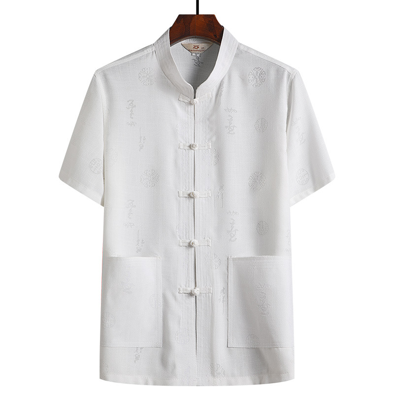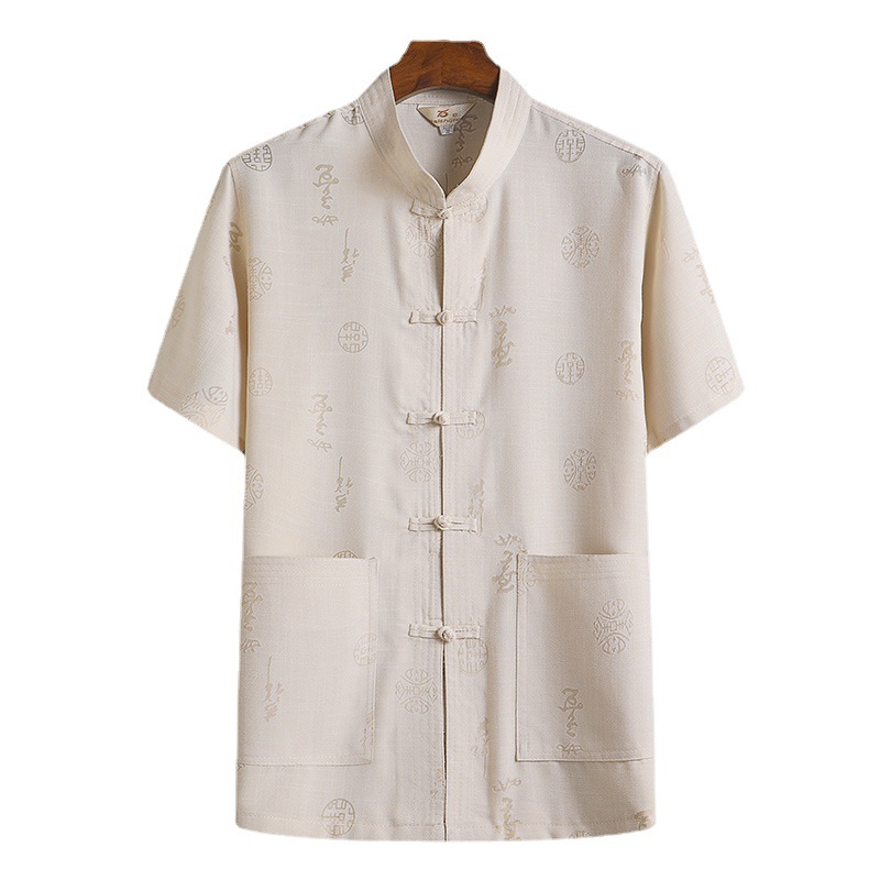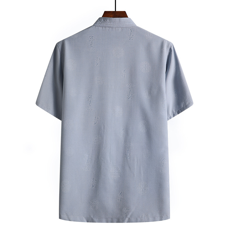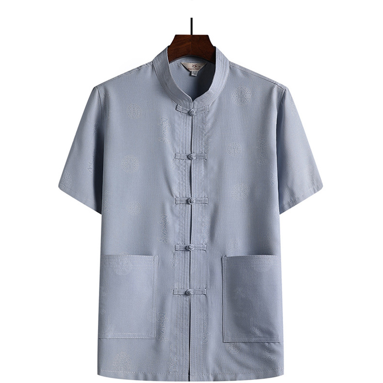 Оптовая продажа мужских костюмов Тан, рубашек в китайском стиле с коротким рукавом на пуговицах ручной работы для мужчин среднего и пожилого возраста (60-70-80 лет).