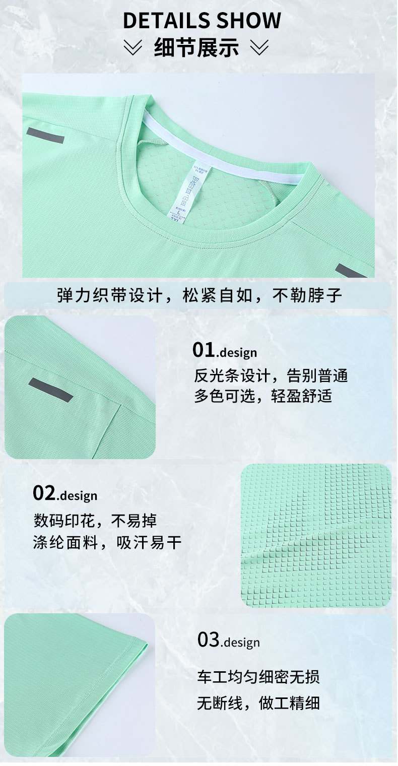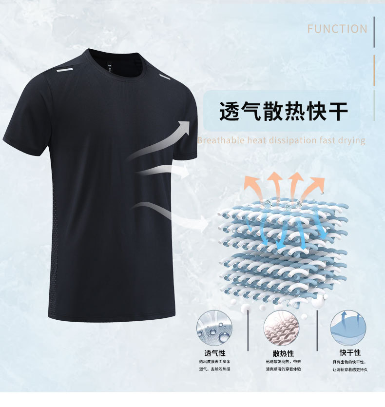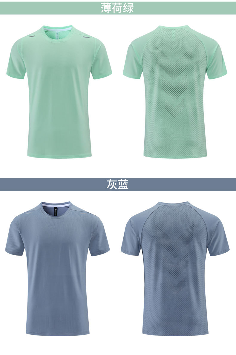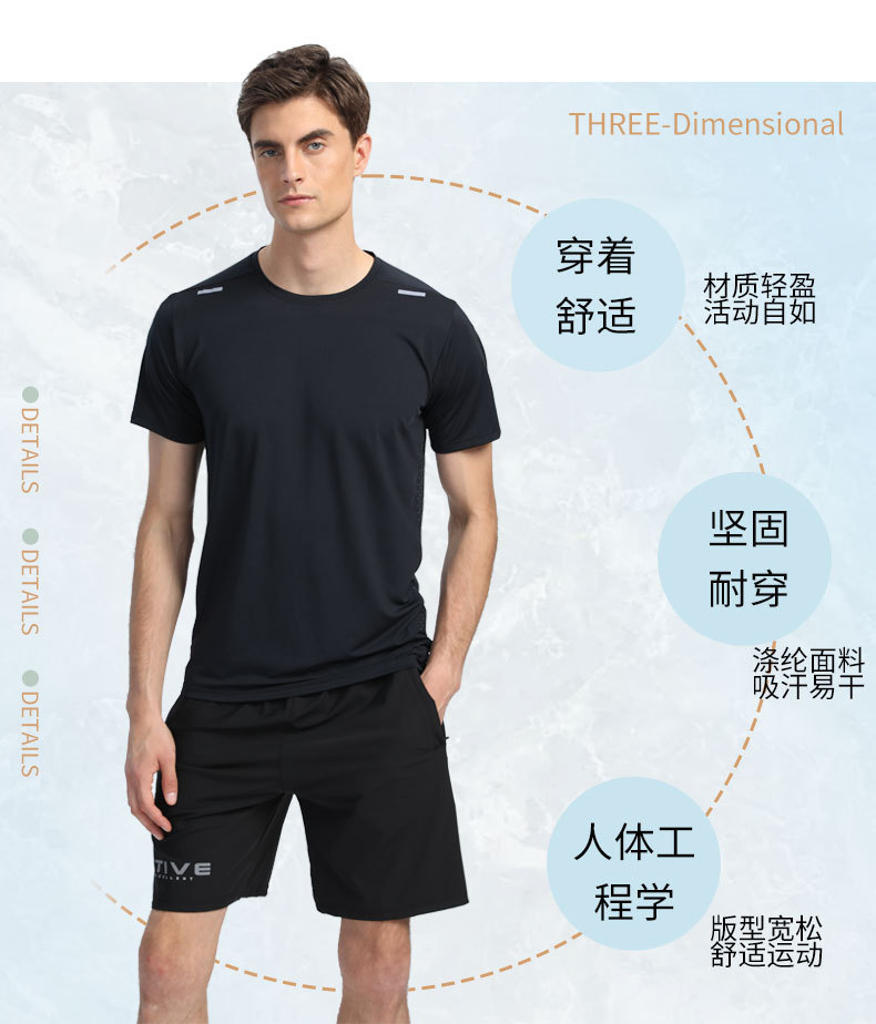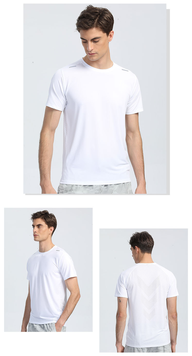 Новая однотонная одежда для бега и тренировок с короткими рукавами Мужская футболка, впитывающая пот, быстросохнущая одежда, спортивный топ со светоотражающей полоской и круглым вырезом