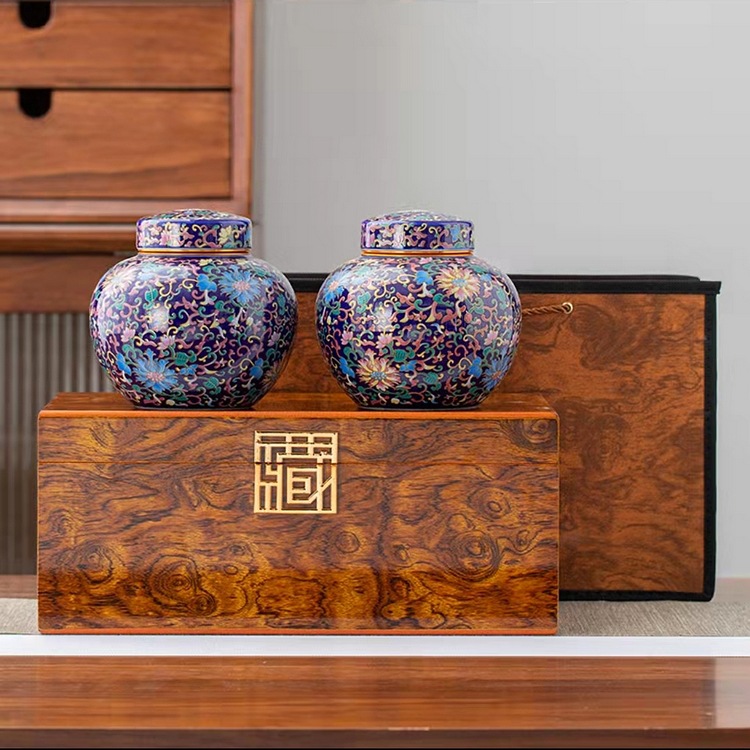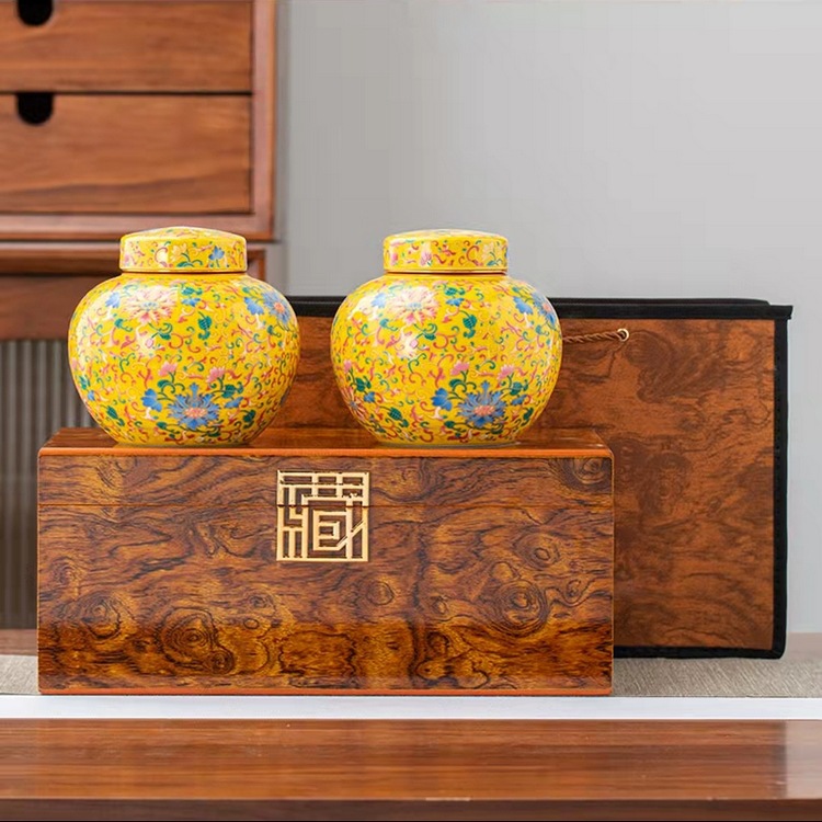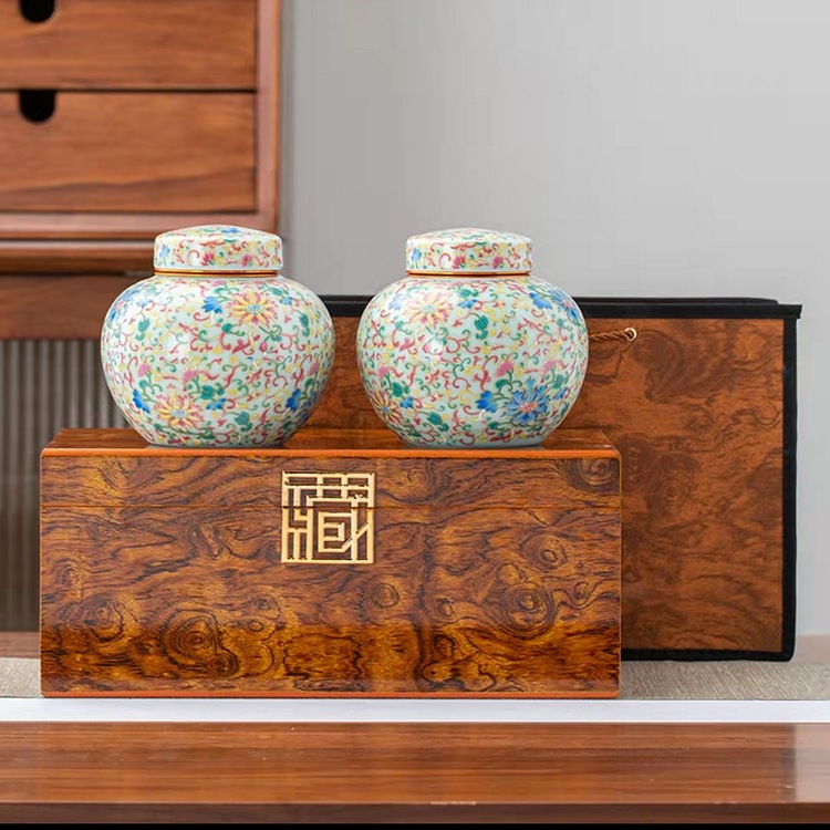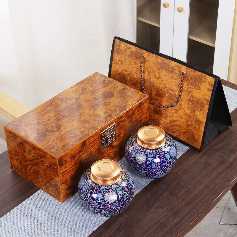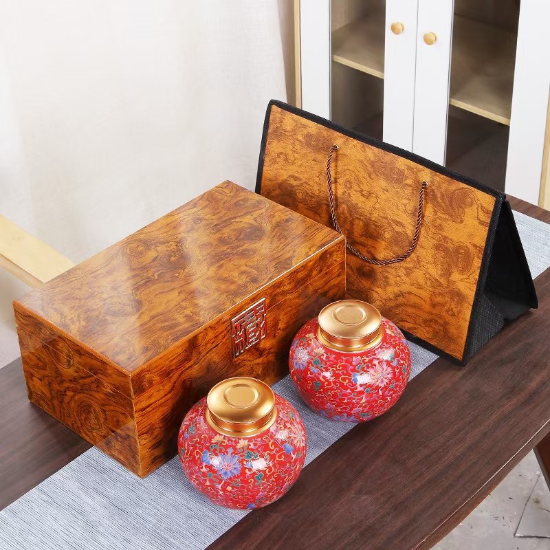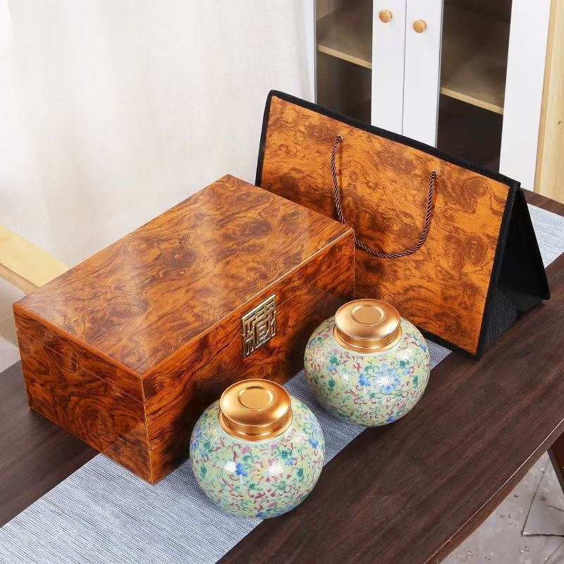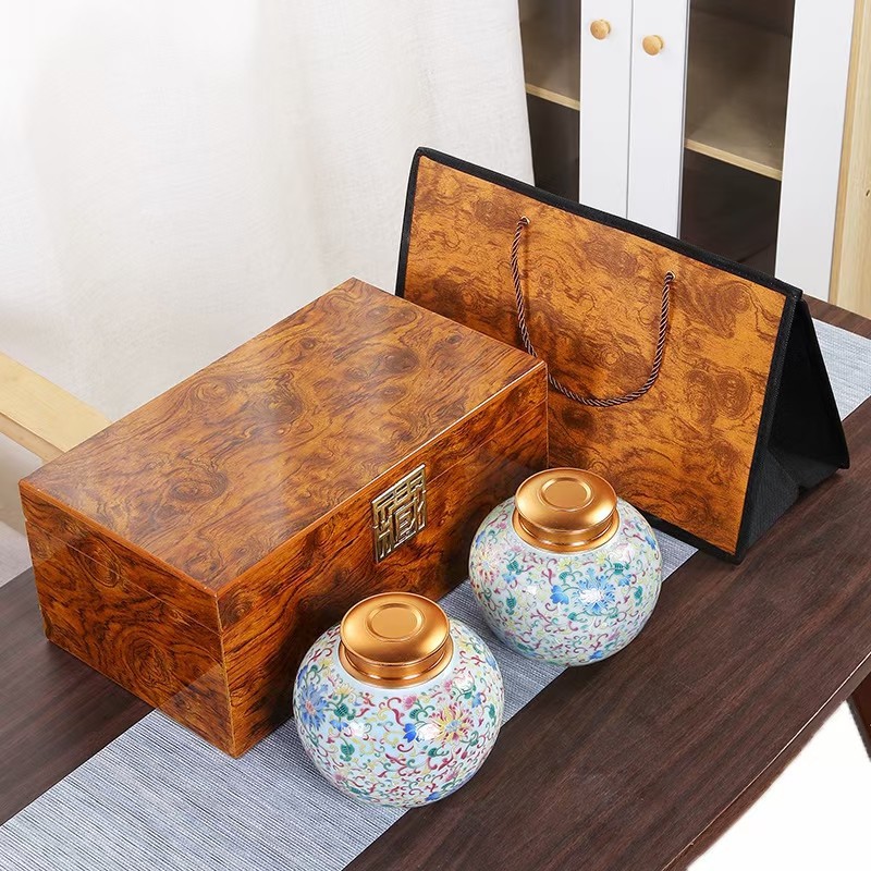 Эмаль Керамические чайные банки Деревянная коробка Полный набор зеленого чая Бутылка черного чая Праздничный подарок Чай Герметичная упаковка Пустая подарочная коробка