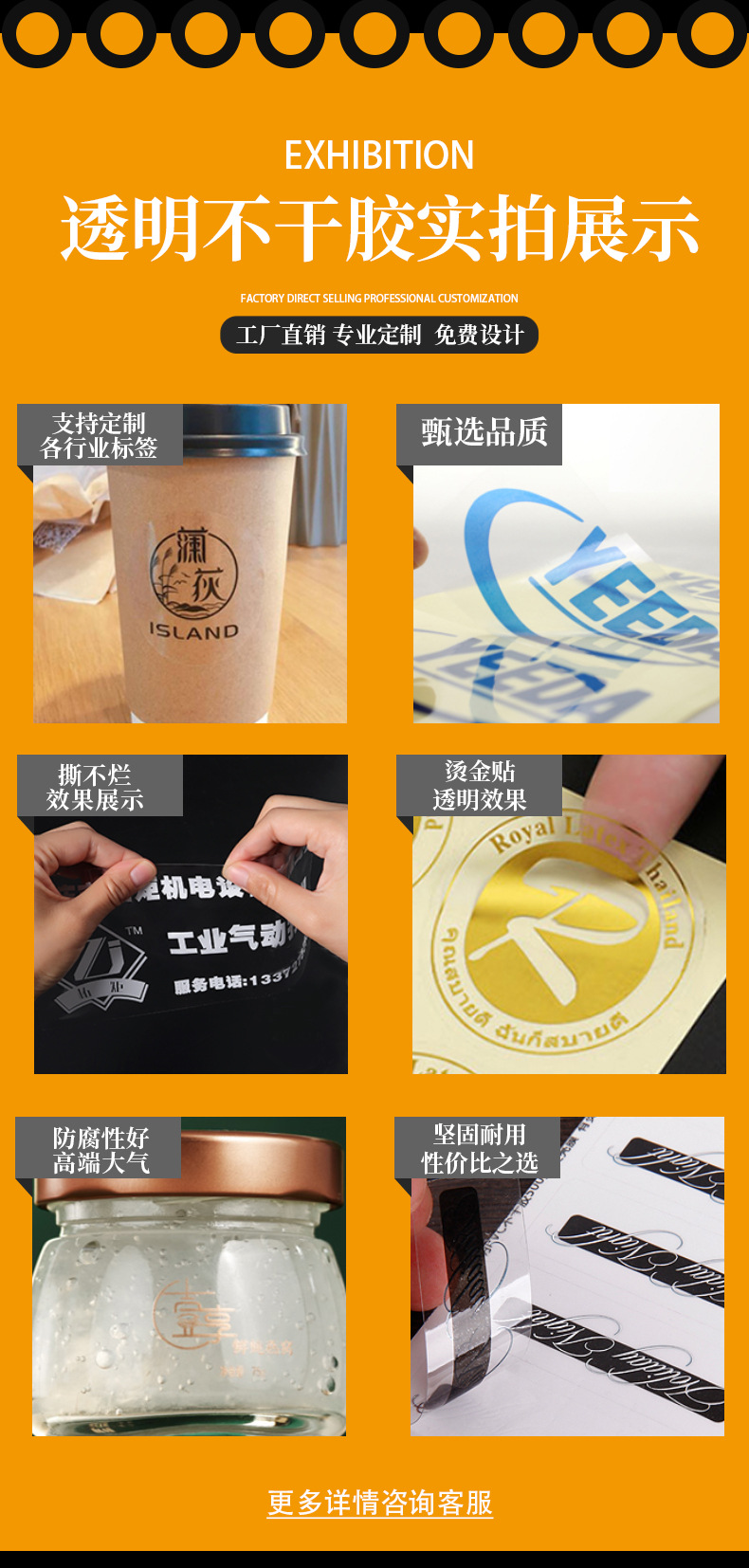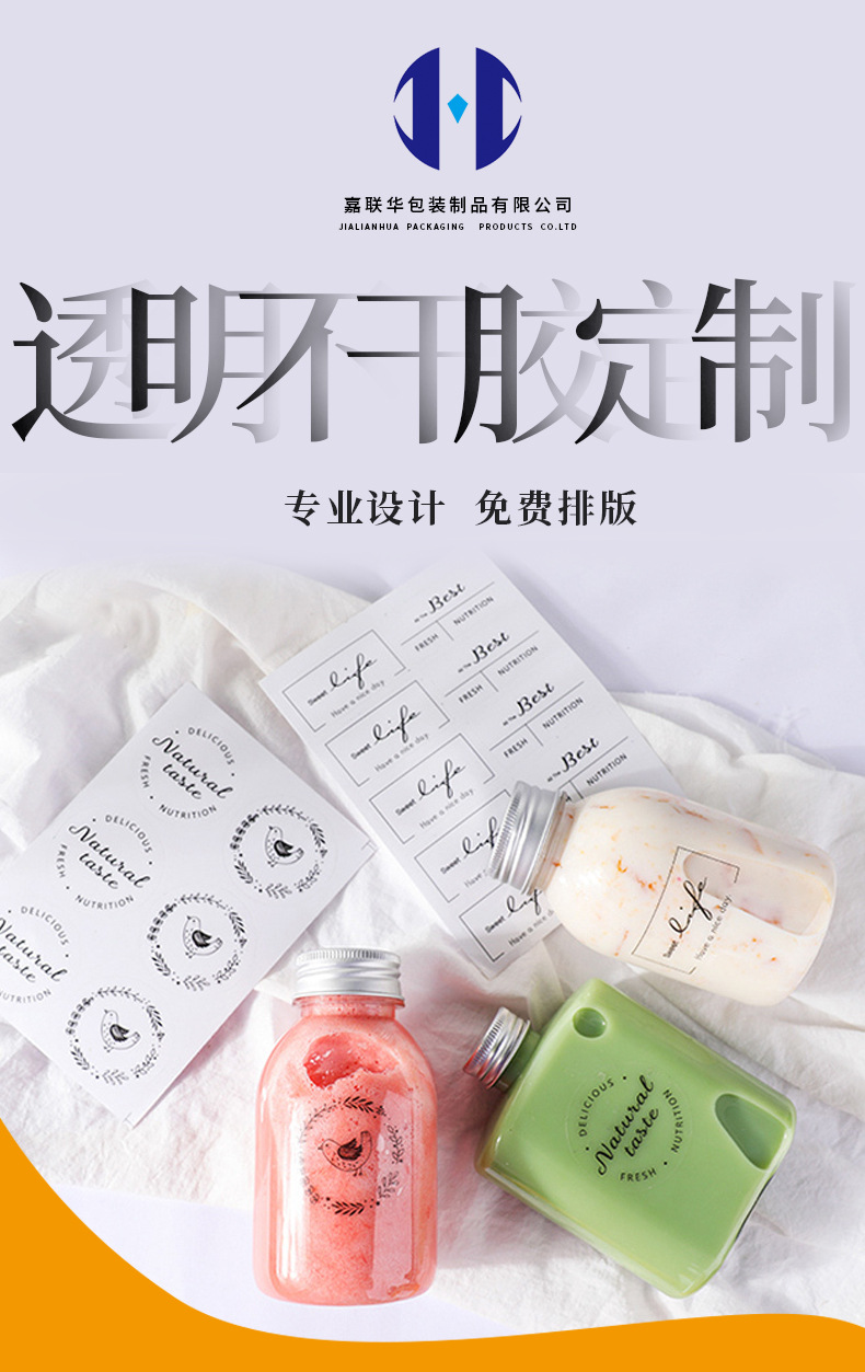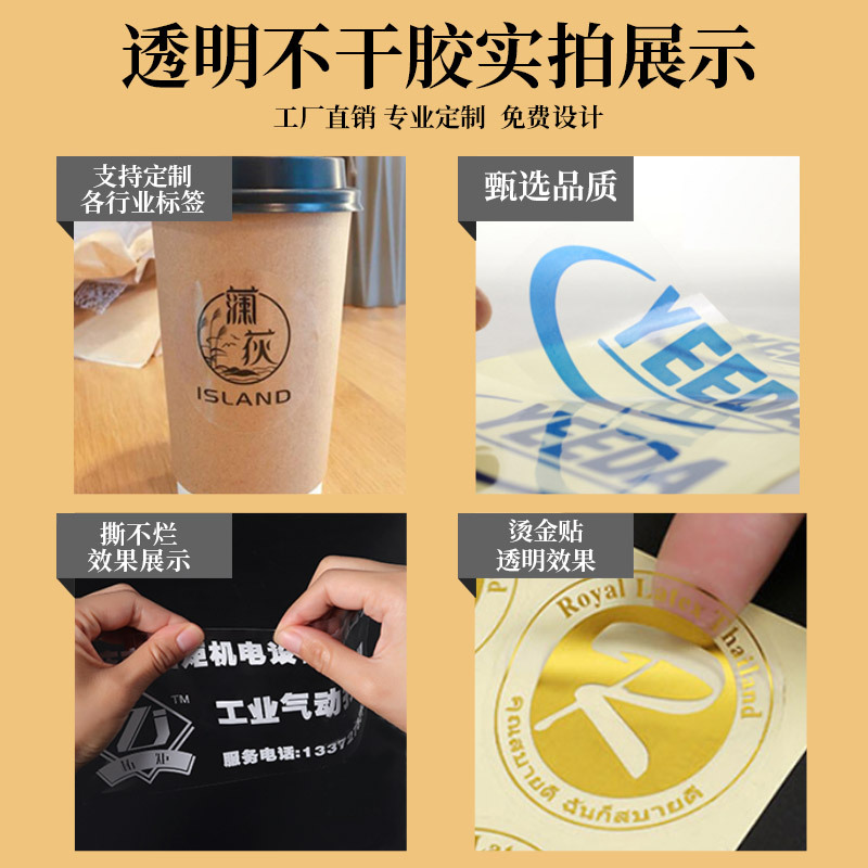 Прозрачная самоклеящаяся этикетка, индивидуальная упаковочная наклейка для небольших партий, упаковка для еды на вынос, логотип бренда, горячее тиснение, трехслойная защита, индивидуальный дизайн