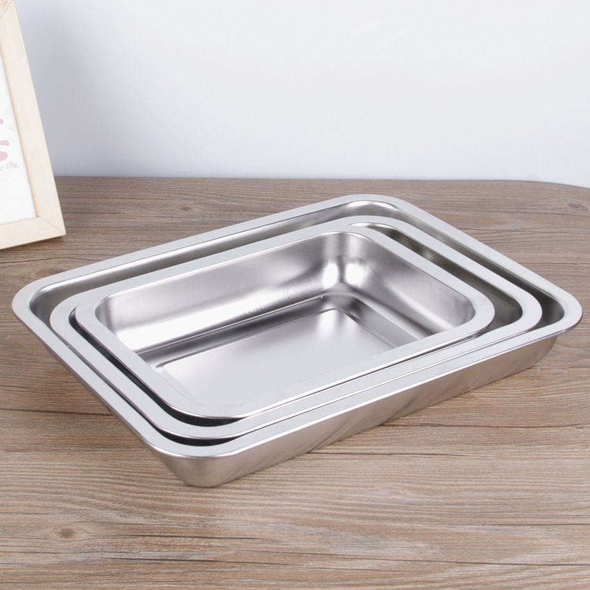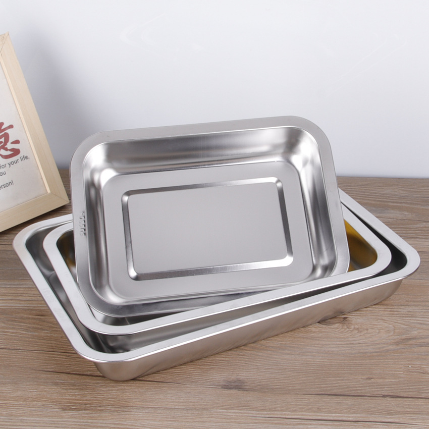 Квадратная тарелка из нержавеющей стали, прямоугольный поднос, тарелка для барбекю, тарелка для жарки рыбы, коммерческая тарелка для приготовления риса на пару, обеденная тарелка большой емкости
