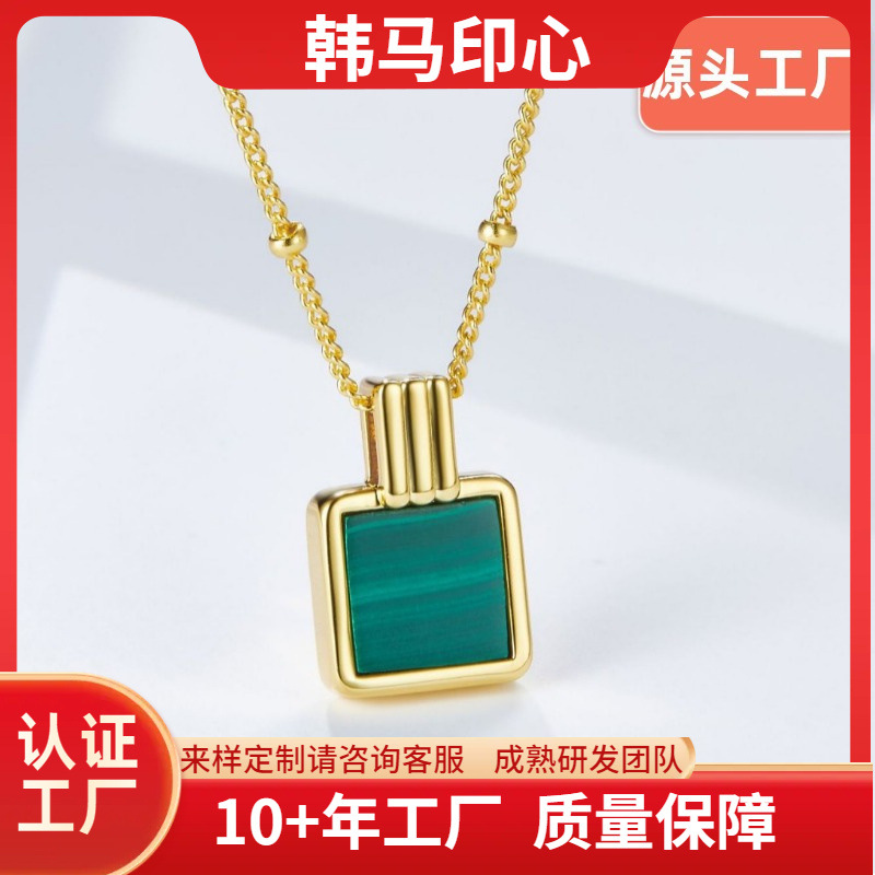 Все тело 925 серебряное ожерелье из натурального малахита кулон в виде флакона духов ниша квадратная цепочка на ключице позолоченная Женская Цепочка Из Бисера