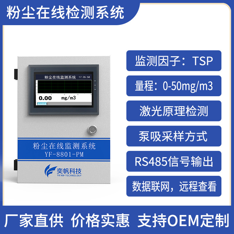 Система онлайн-контроля пыли-депозит; Параметры: TSP, диапазон: 0–50 мг/м³, режим вывода: 485, с поддержкой сетевого подключения; Параметры: TSP, диапазон: 0–50 мг/м³, режим вывода: 4–20 мА, с поддержкой сетевого подключения; Функция RS485: данные в реальном времени + хранение + подключение к сети + звуковая и визуальная сигнализация