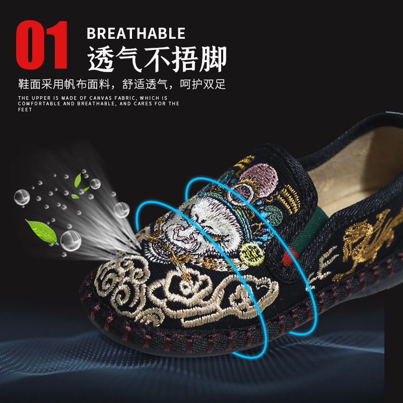 Детские тканевые туфли в старинном пекинском стиле, ручной работы, в китайском стиле, уникальные вышитые тканевые туфли, ретро.