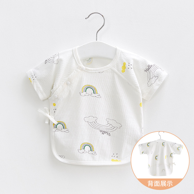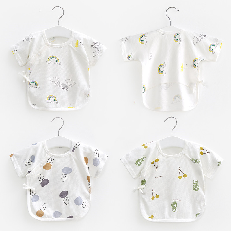 Летняя одежда для новорожденных, тонкий фасон для 0-3 месяцев, хлопковый летний комплект с открытой спиной, топ с коротким рукавом в стиле монк для малышей.
