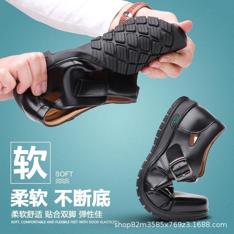 [100 полностью воловьей кожи] Мужская обувь со специальной обработкой, кожаные сандалии, летняя нескользящая обувь для Пап