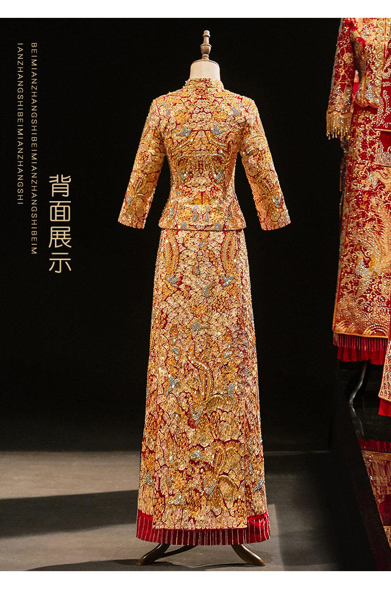 Свадебное платье Xiuhe 2025 Новое золотое свадебное платье в китайском стиле для королевской свадьбы, утягивающее высококачественное платье с драконом и фениксом на весну.